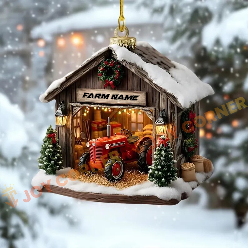 Joycorners Merry Christmas Farm Tractor Custom Name Acrylic Ornament