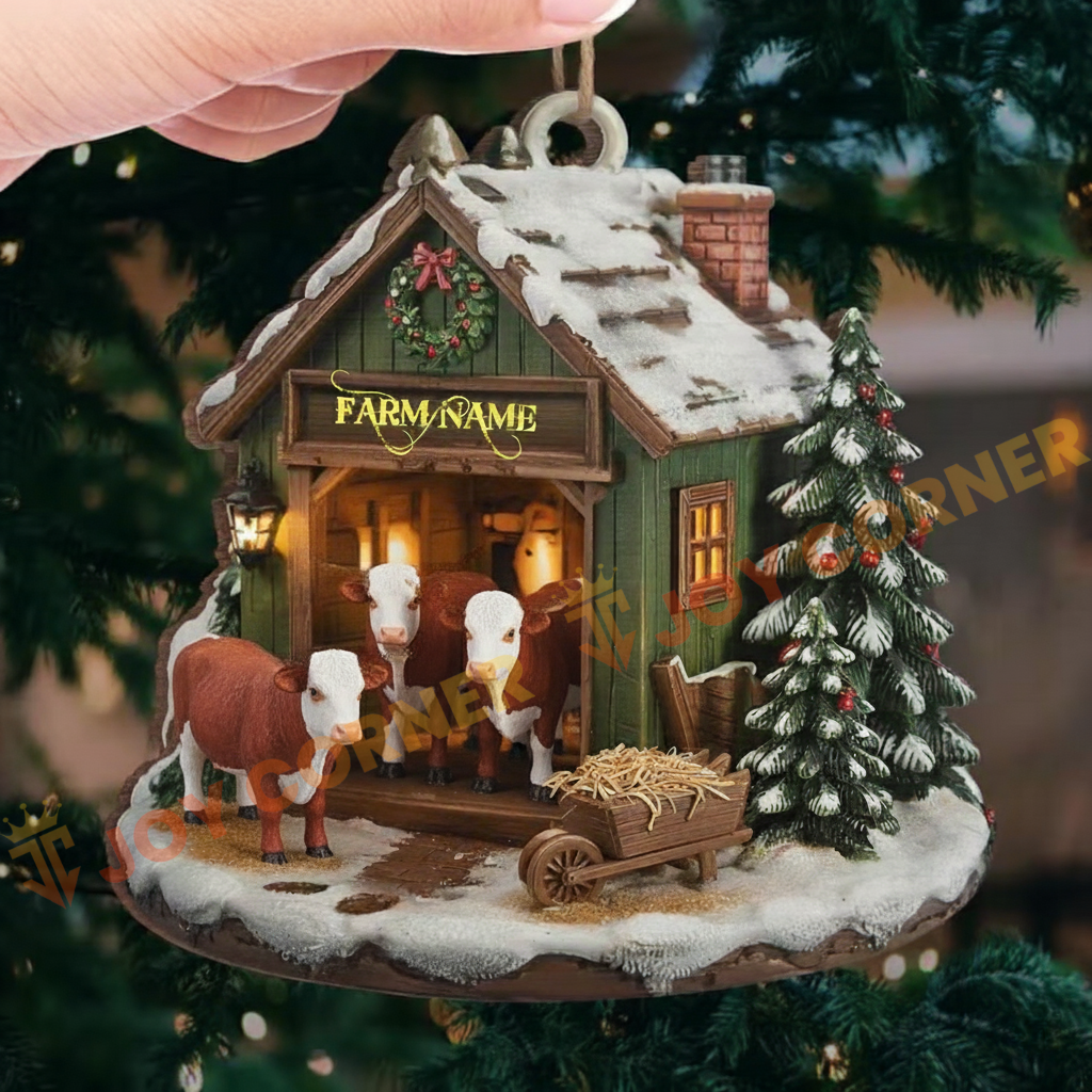 Joycorners Merry Christmas Gifts Farm Cattle Ornament, Acrylic Ornament (8 Breed Options)