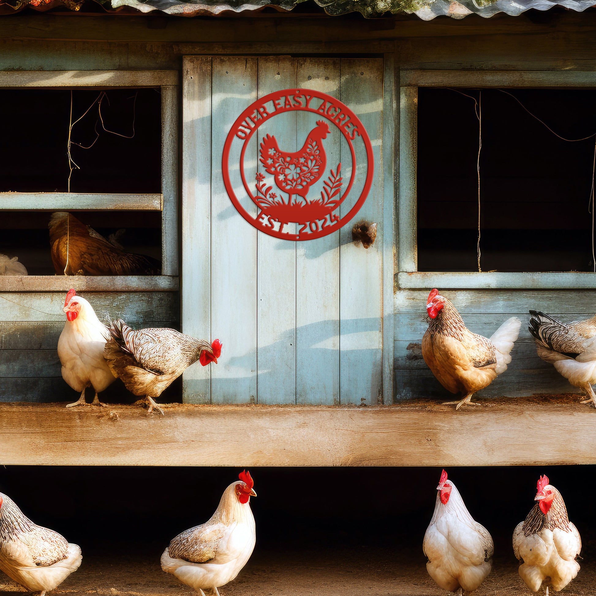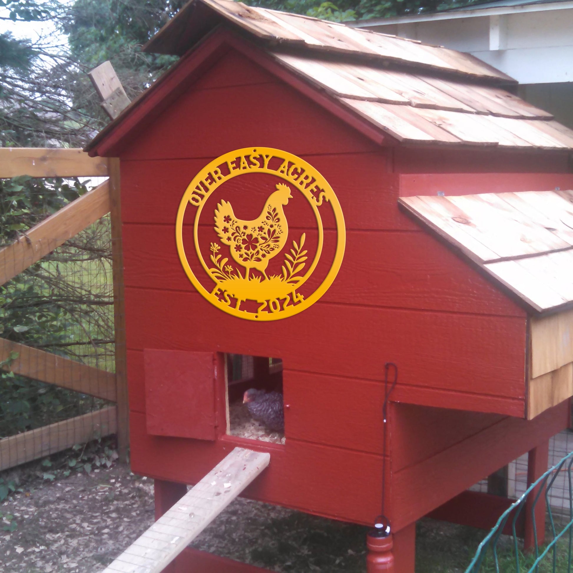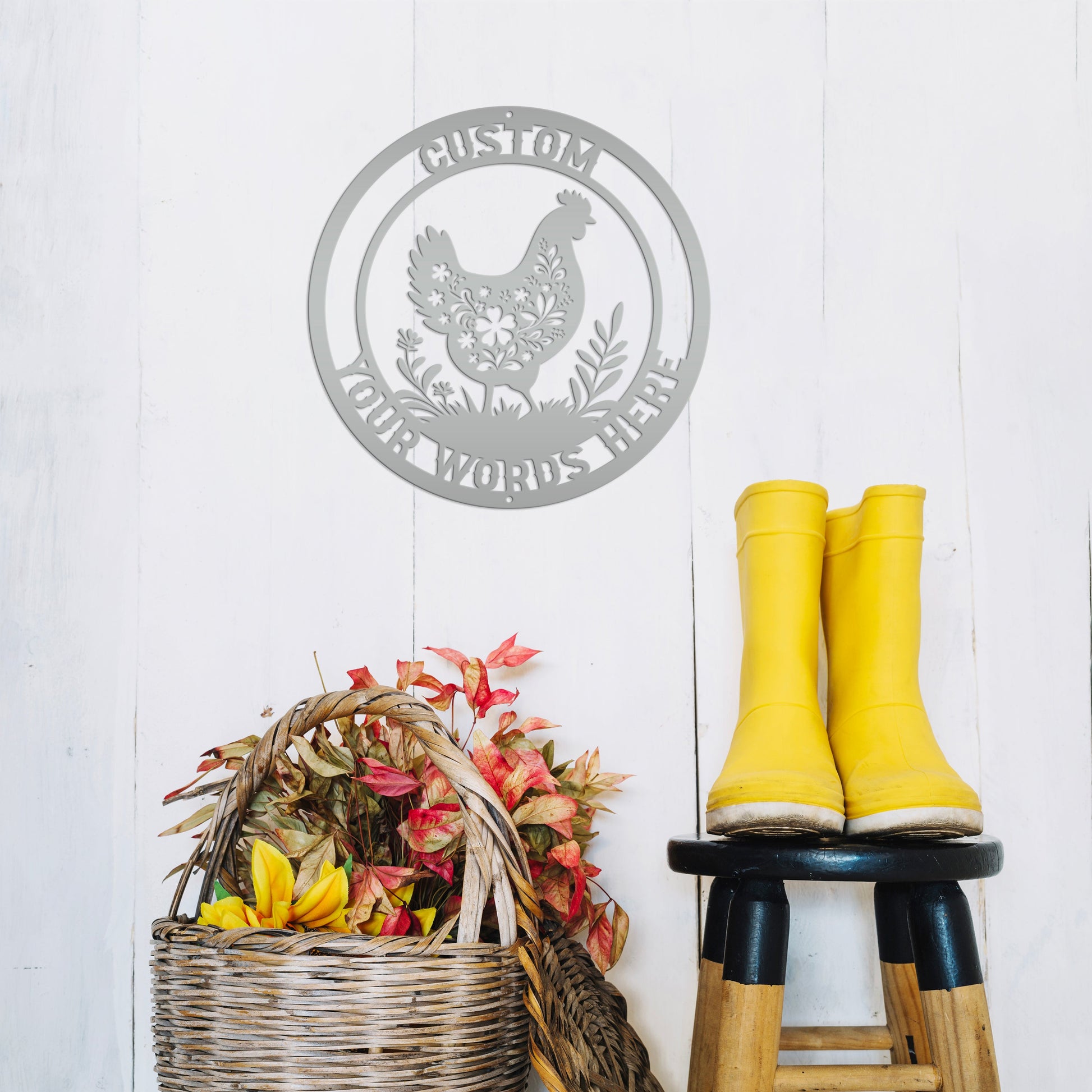 Joycorners Metal Chicken Sign with Floral Design - Unique Personalized Farm Decor - Charming Custom Chicken Coop Plaque - Rustic Farmhouse Wall Hanging LM0110