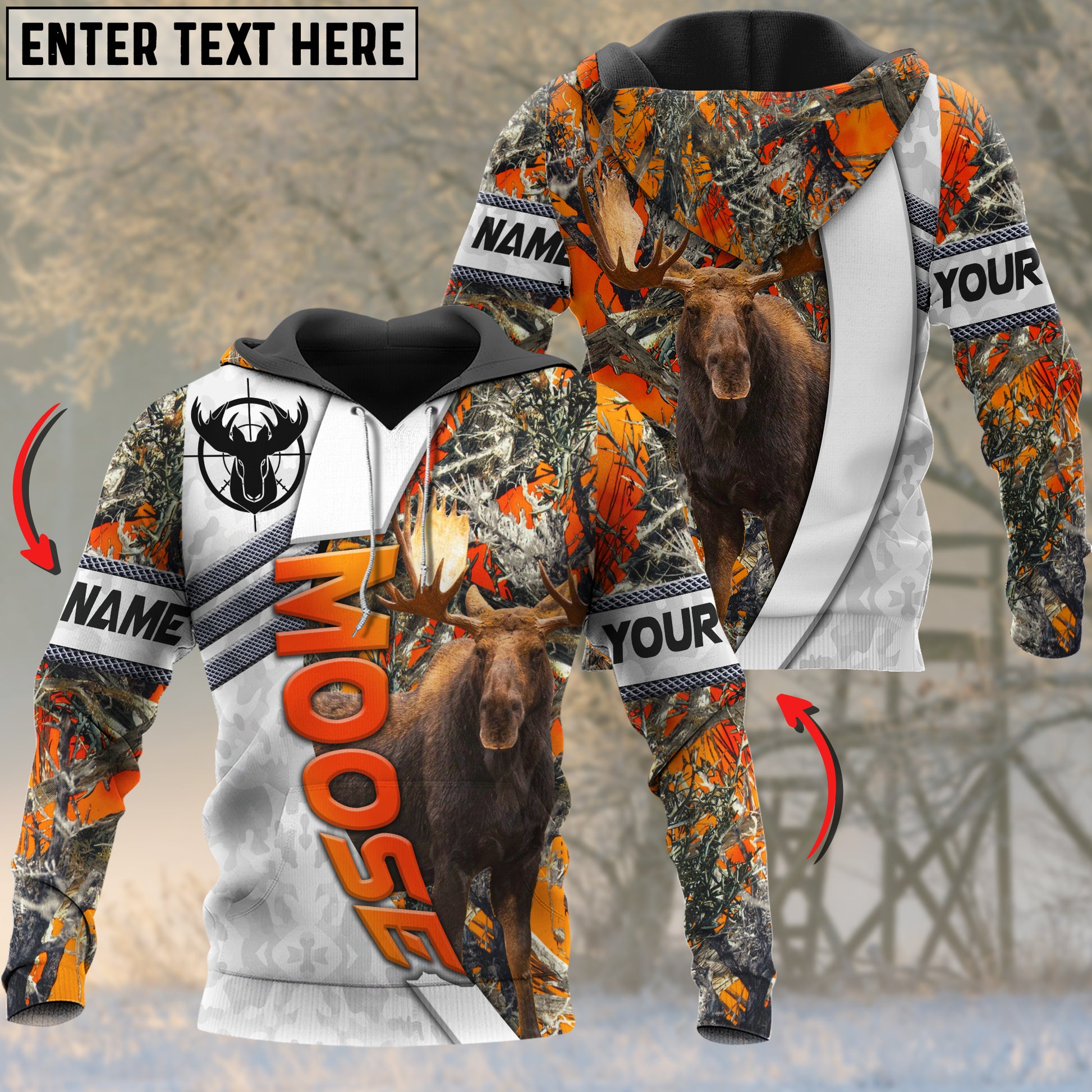 Joycorners Moose Deer Personalized Name Orange Lava Pattern 3D Hoodie
