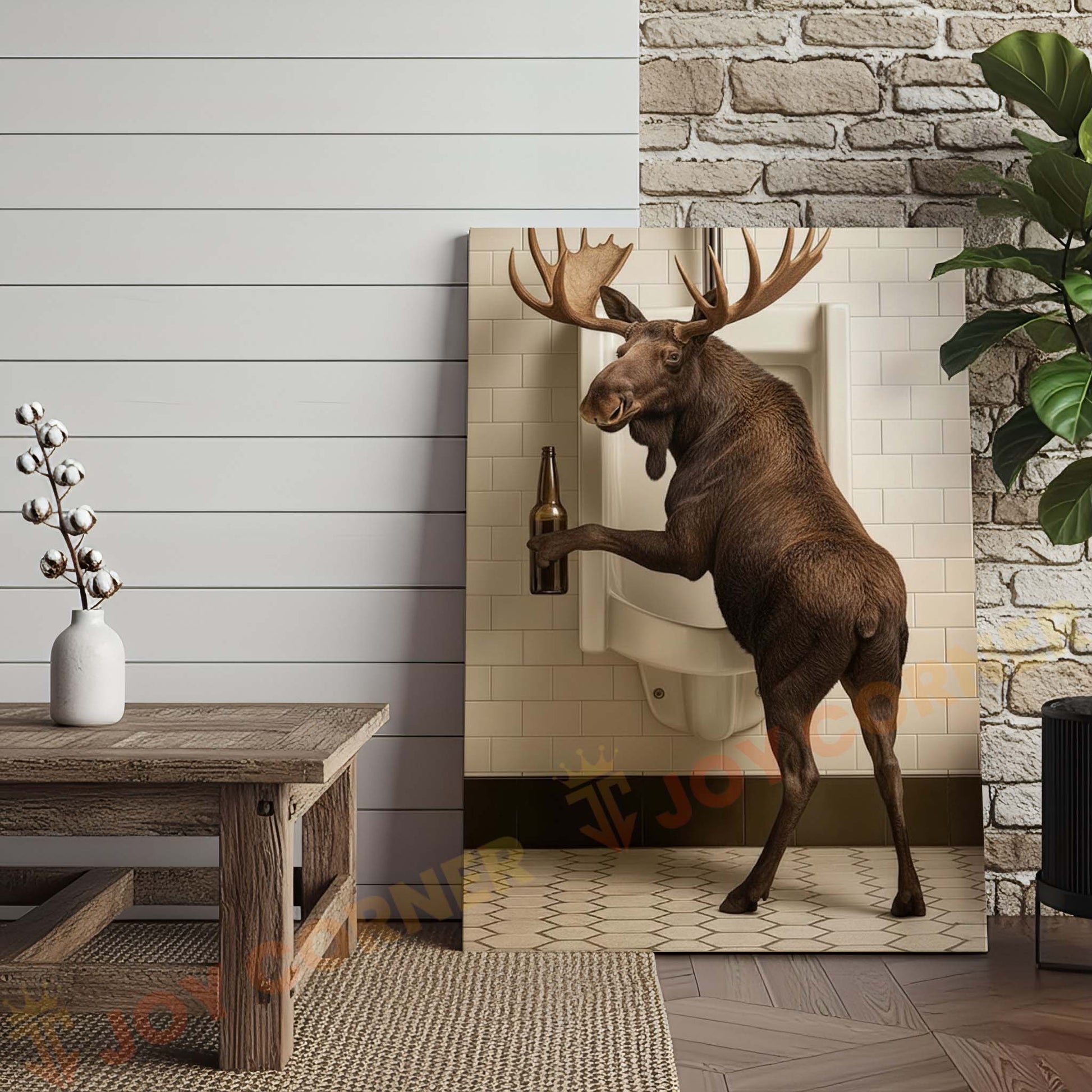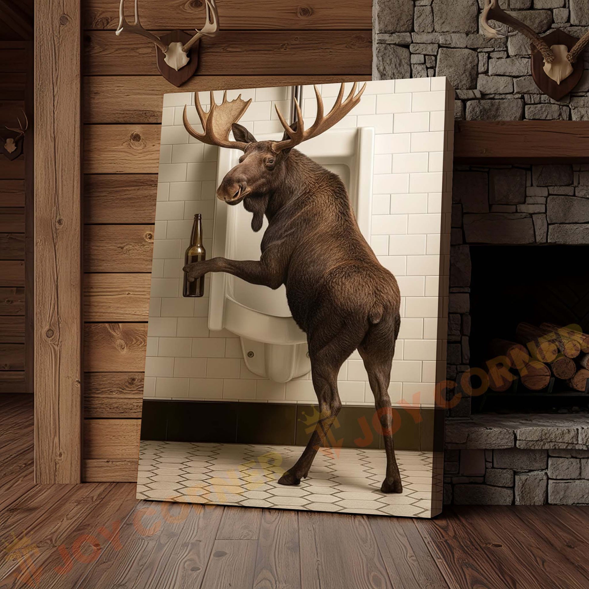 Joycorners Moose Holding Beer at Urinal Wrapped Canvas