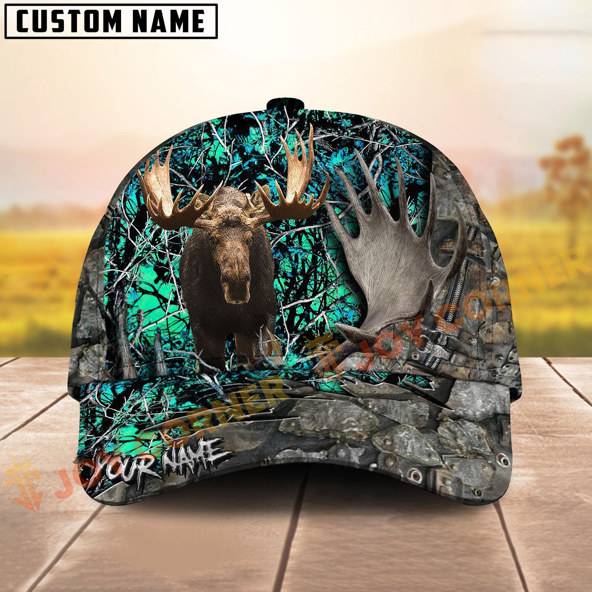 Joycorners Moose Hunting Hunter Antlers Skull Camo Custom Name 3D Cap (7 Colors)