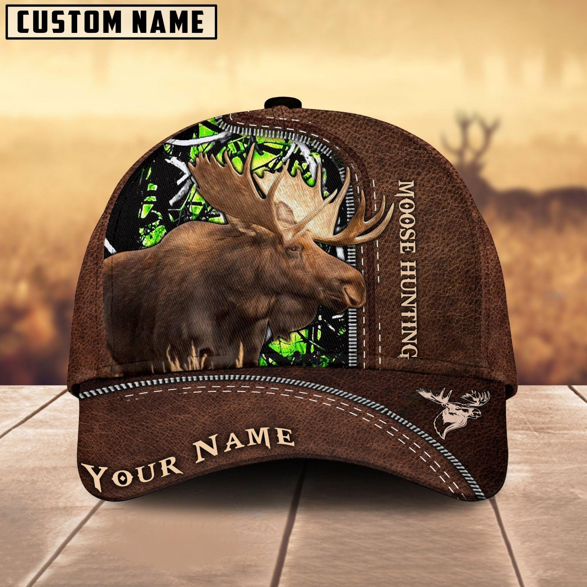 Joycorners Moose Hunting Brown Leather Pattern Mutilcolored Personalized Name 3D Cap