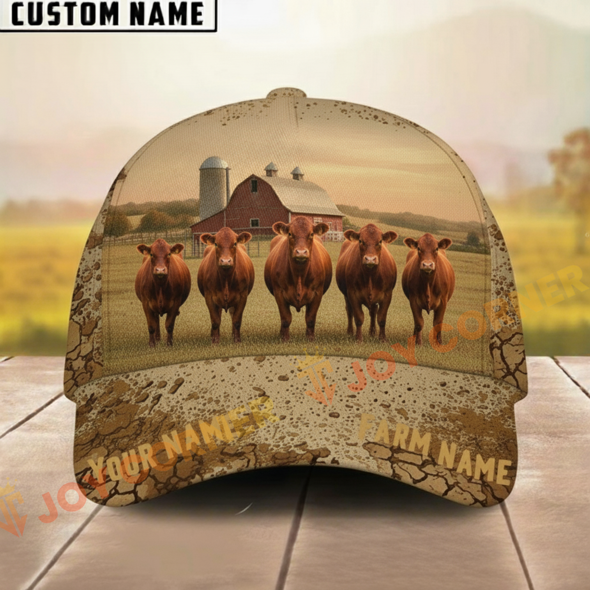 Joycorners Mud Pattern Classic Personalized Name & Farm Name Cattle Cap (9 Cattle Breeds)