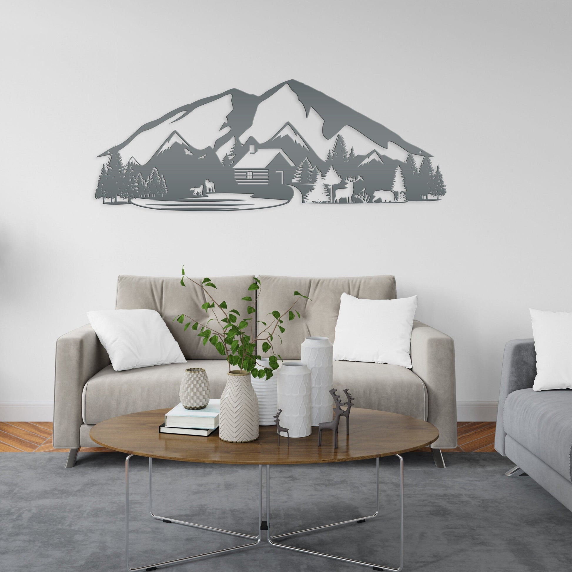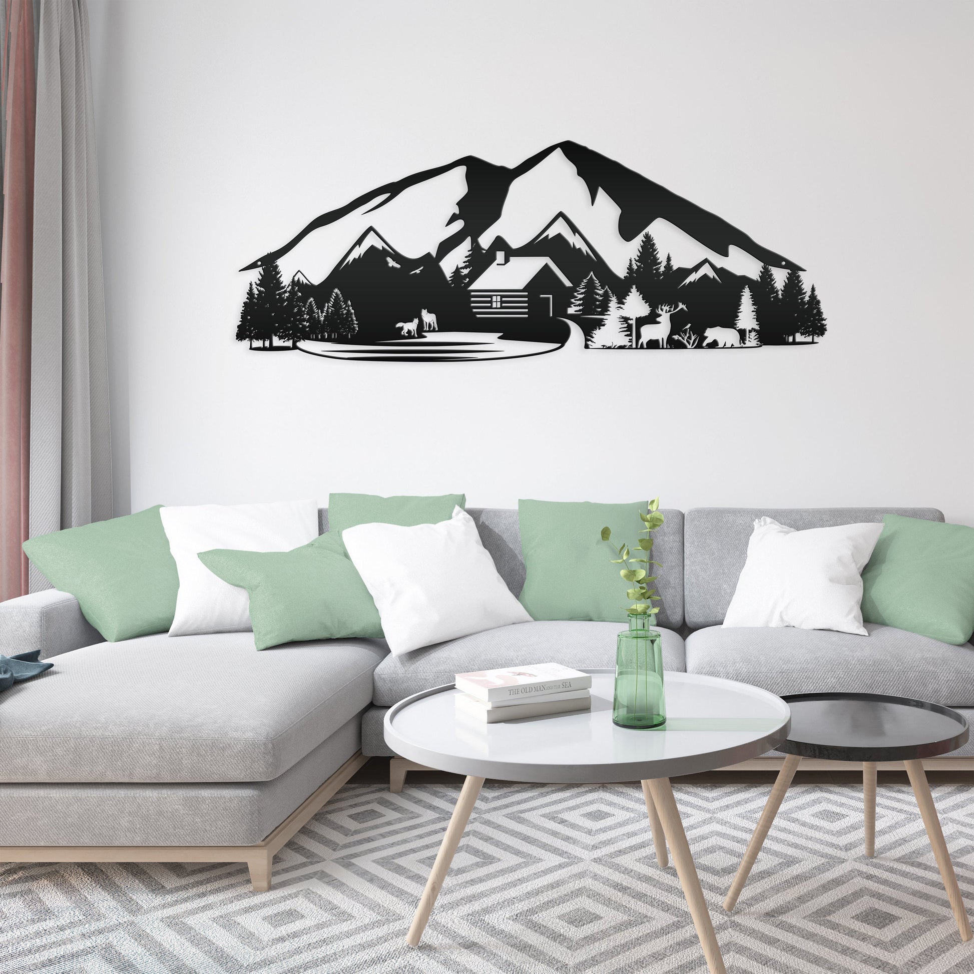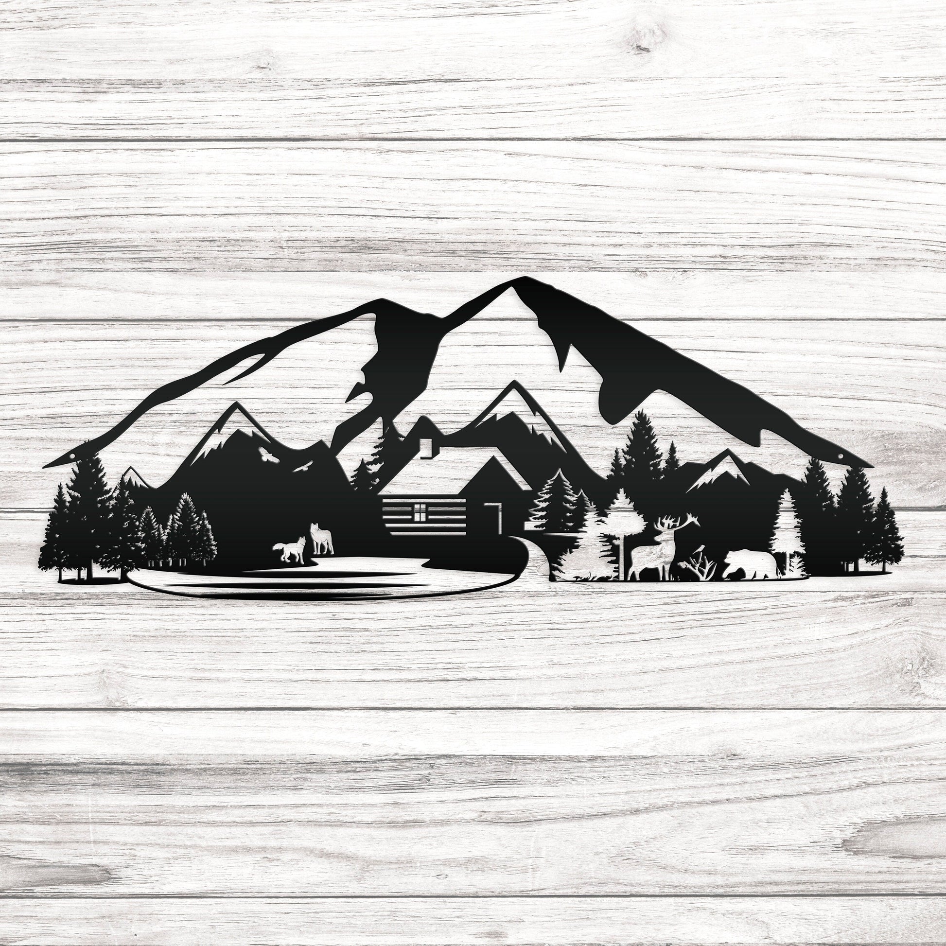 Joycorners Outdoor Mountain Cabin Silhouette Nature Scene Metal Sign-Rustic Themed Cabin-Lodge Decor LM0110