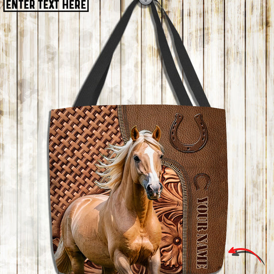Joycorners Palomino Horse Carving Leather Pattern Custom Name 3D Tote Bag