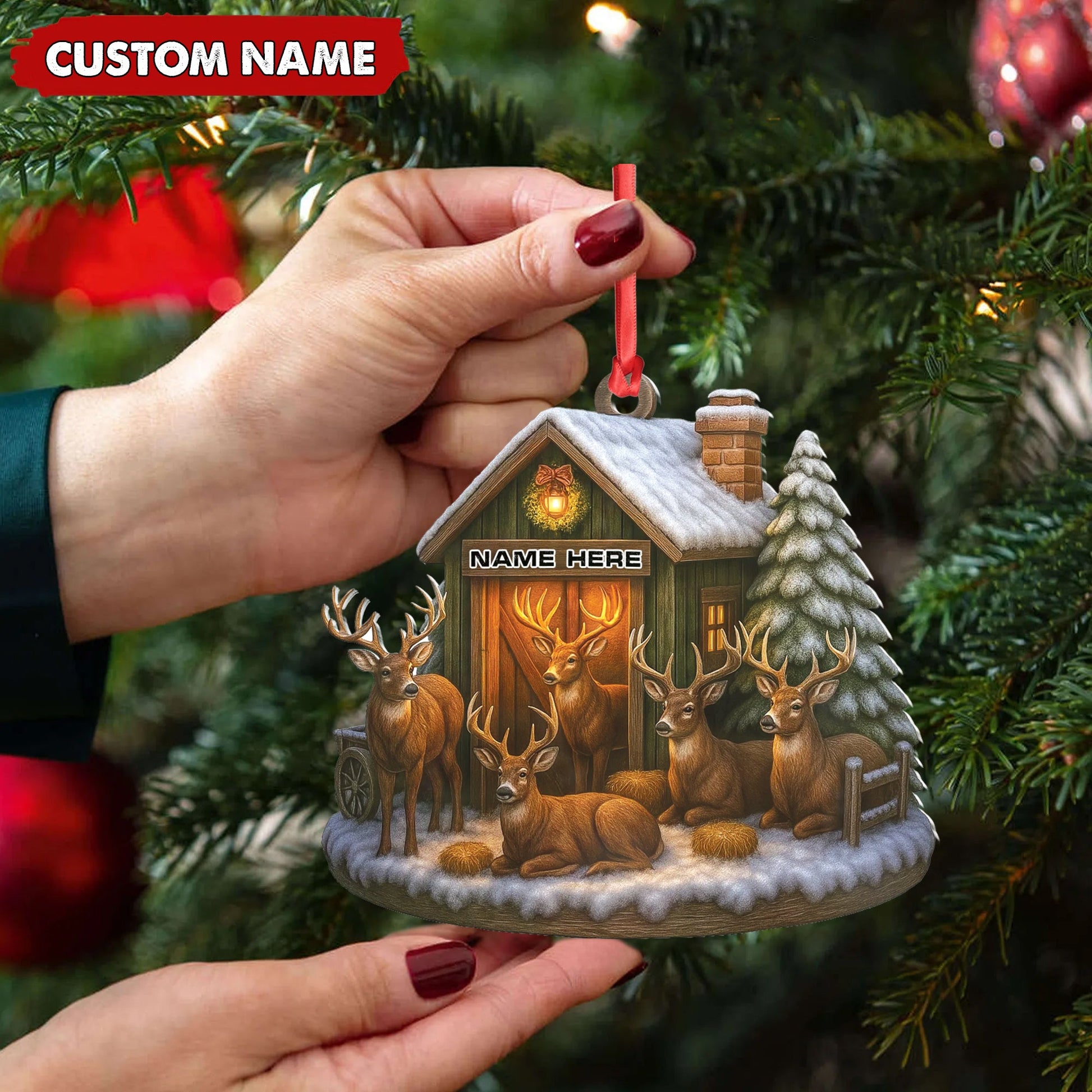 Joycorners Personalized Acrylic Deer Family Christmas Ornament – Rustic Holiday Cabin Decor for Hunters & Wildlife Lovers MT1111