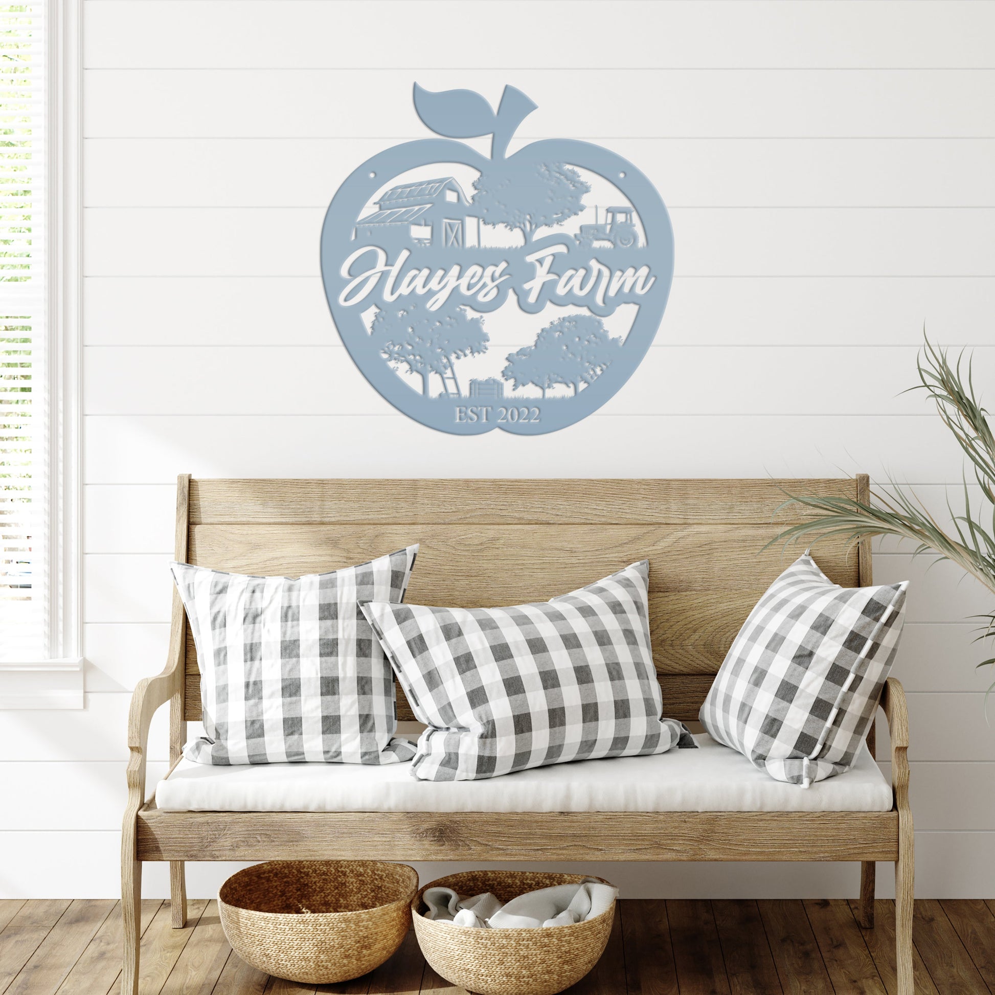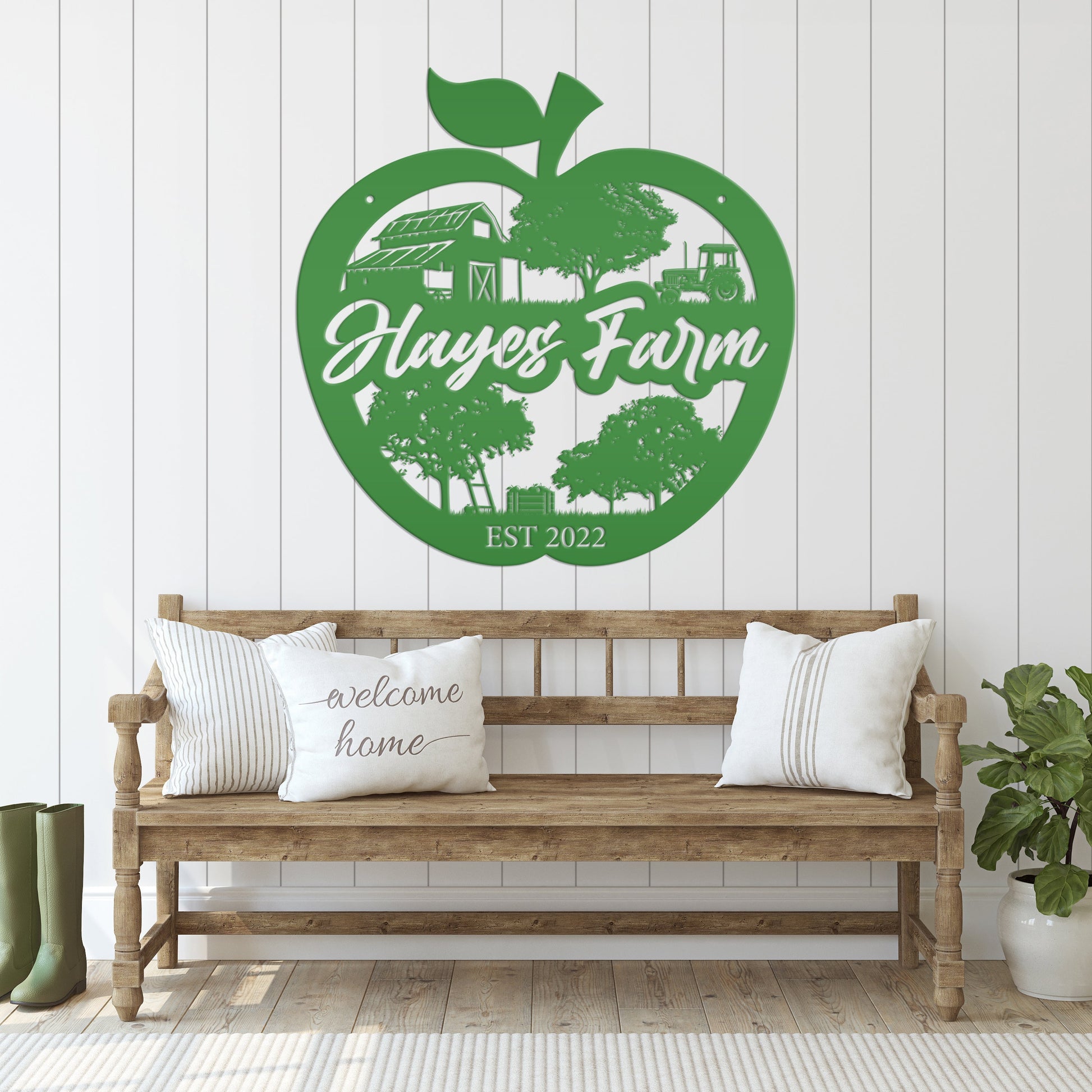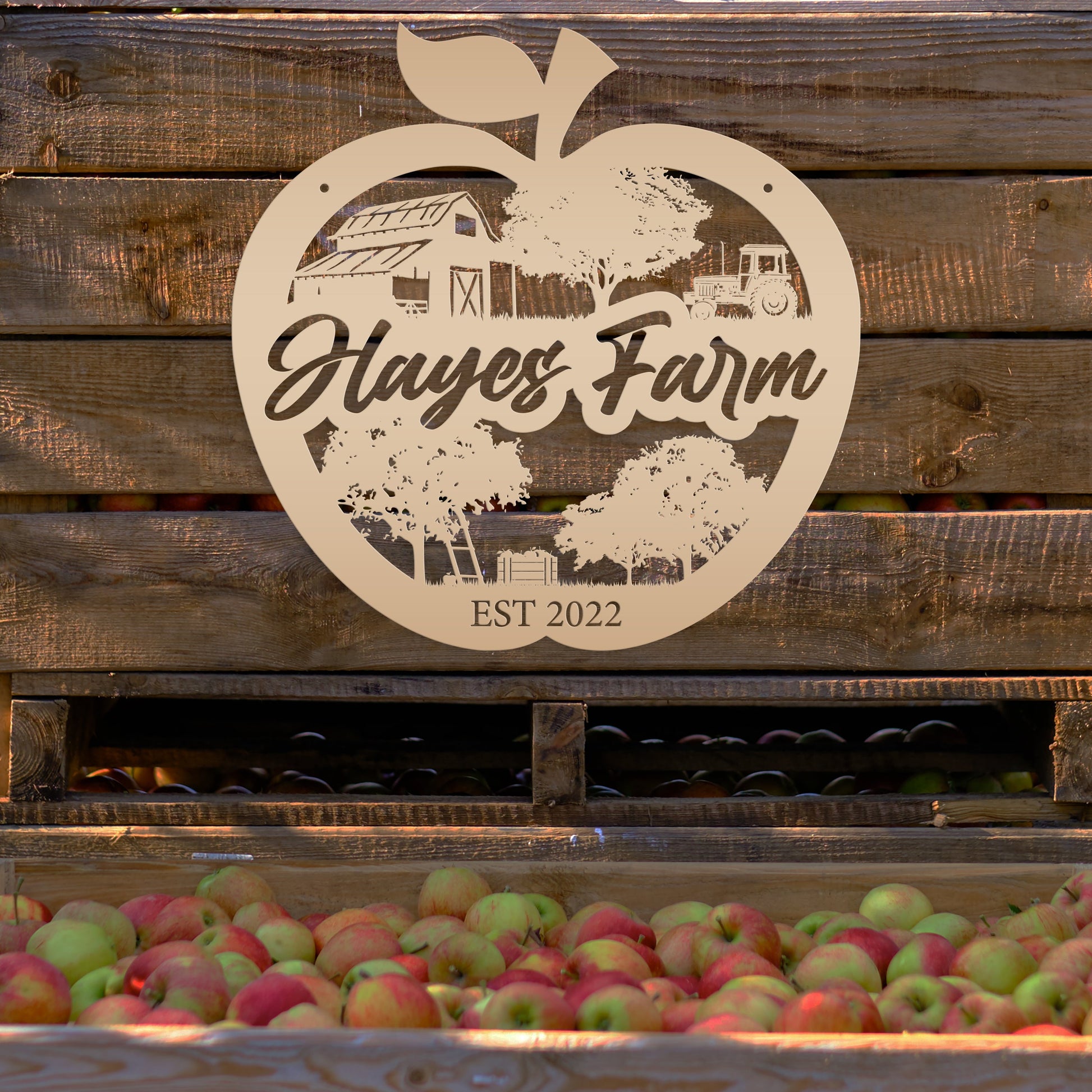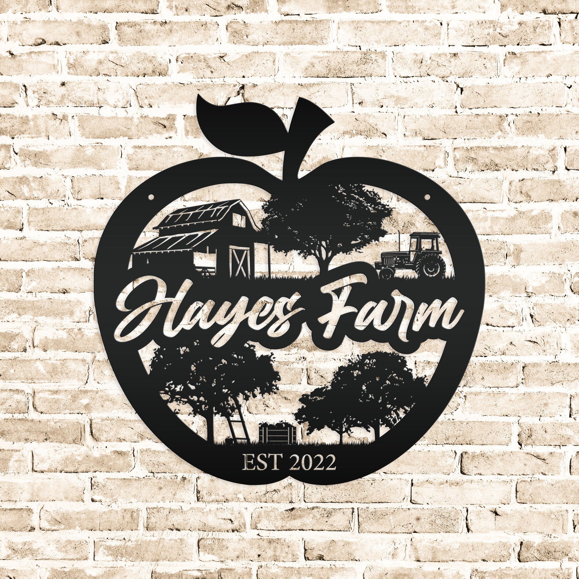 Joycorners Personalized Apple Farm Metal Sign, Apple Shaped Sign Wall Decor, Apple Farm Business Sign, Apple Wall Art & Decor, Apple Orchard Sign LM0110
