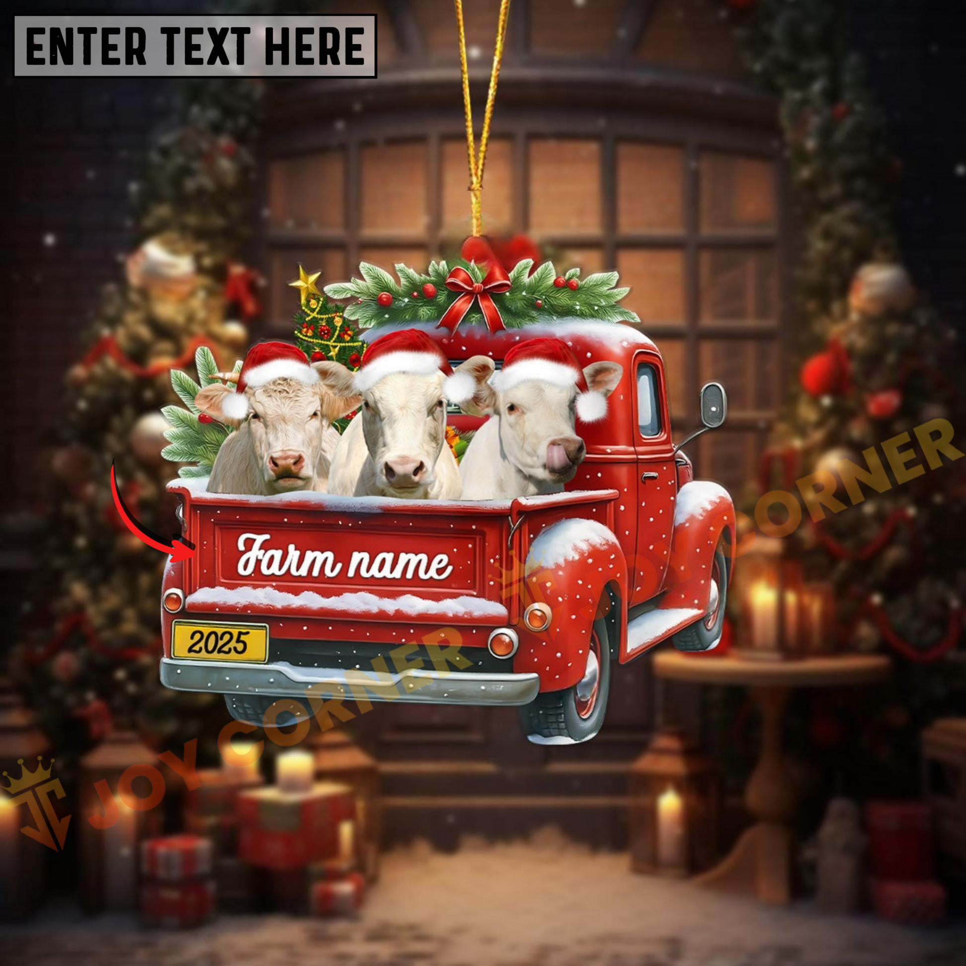Joycorners Personalized Charolais Christmas Farm Truck Custom Shape Acrylic Ornament