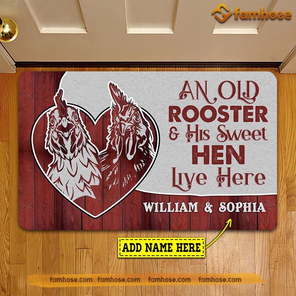 Joycorners Personalized Chicken Doormat, An Old Rooster His Sweet Hen Live Here Gift For Chicken Lovers, New Home Gift, Housewarming Gift, Chicken Decor LM0210