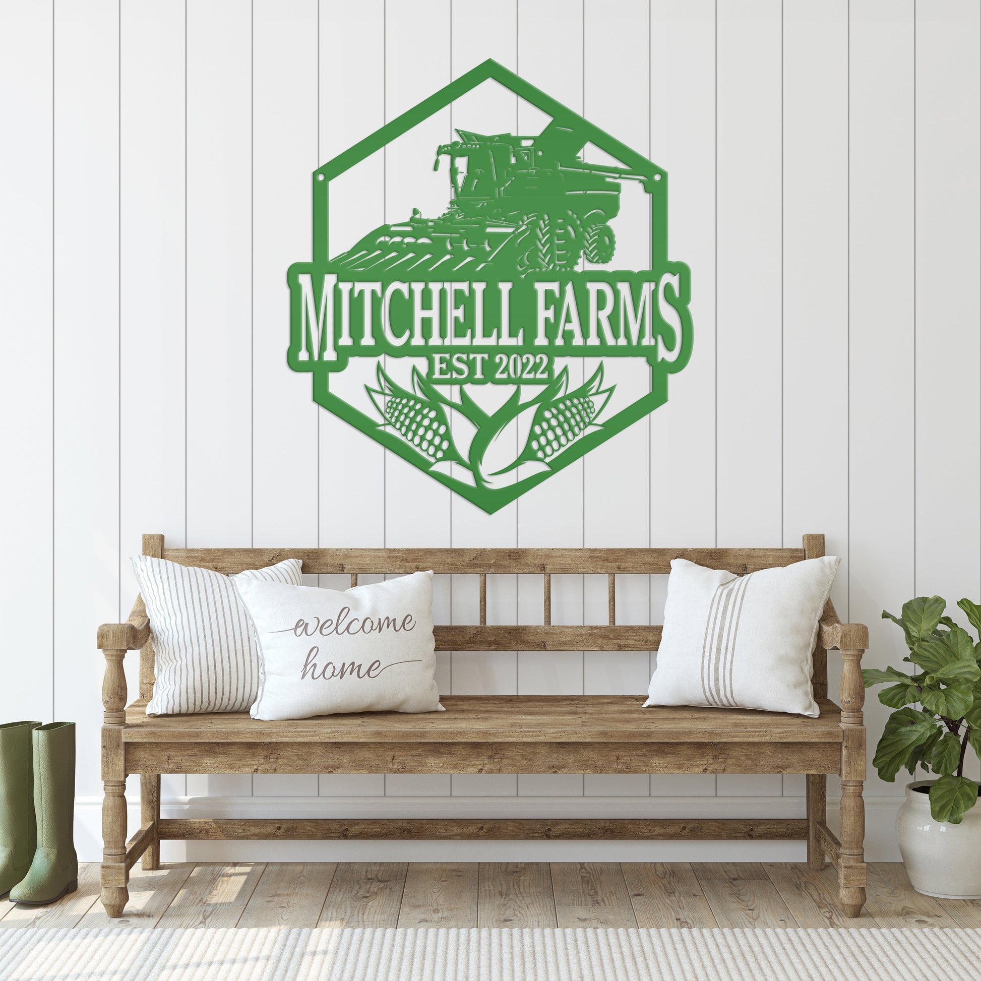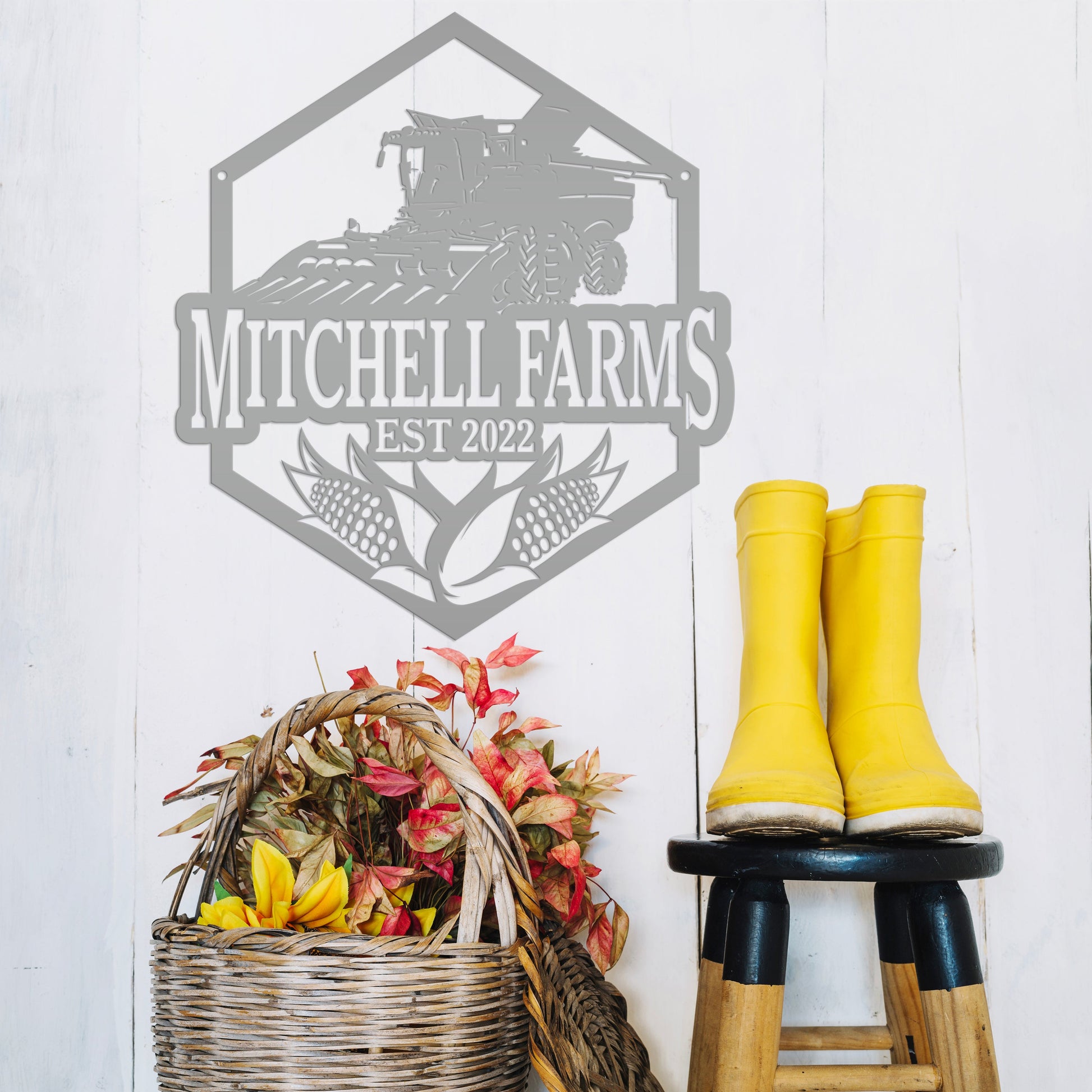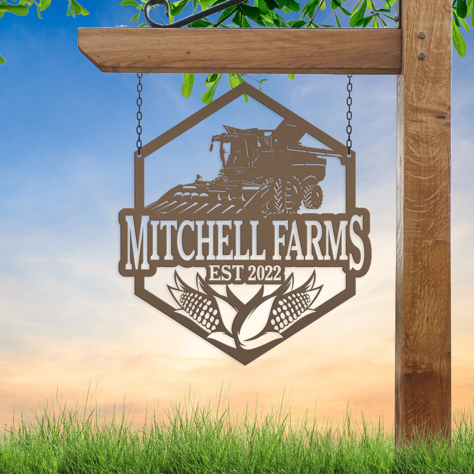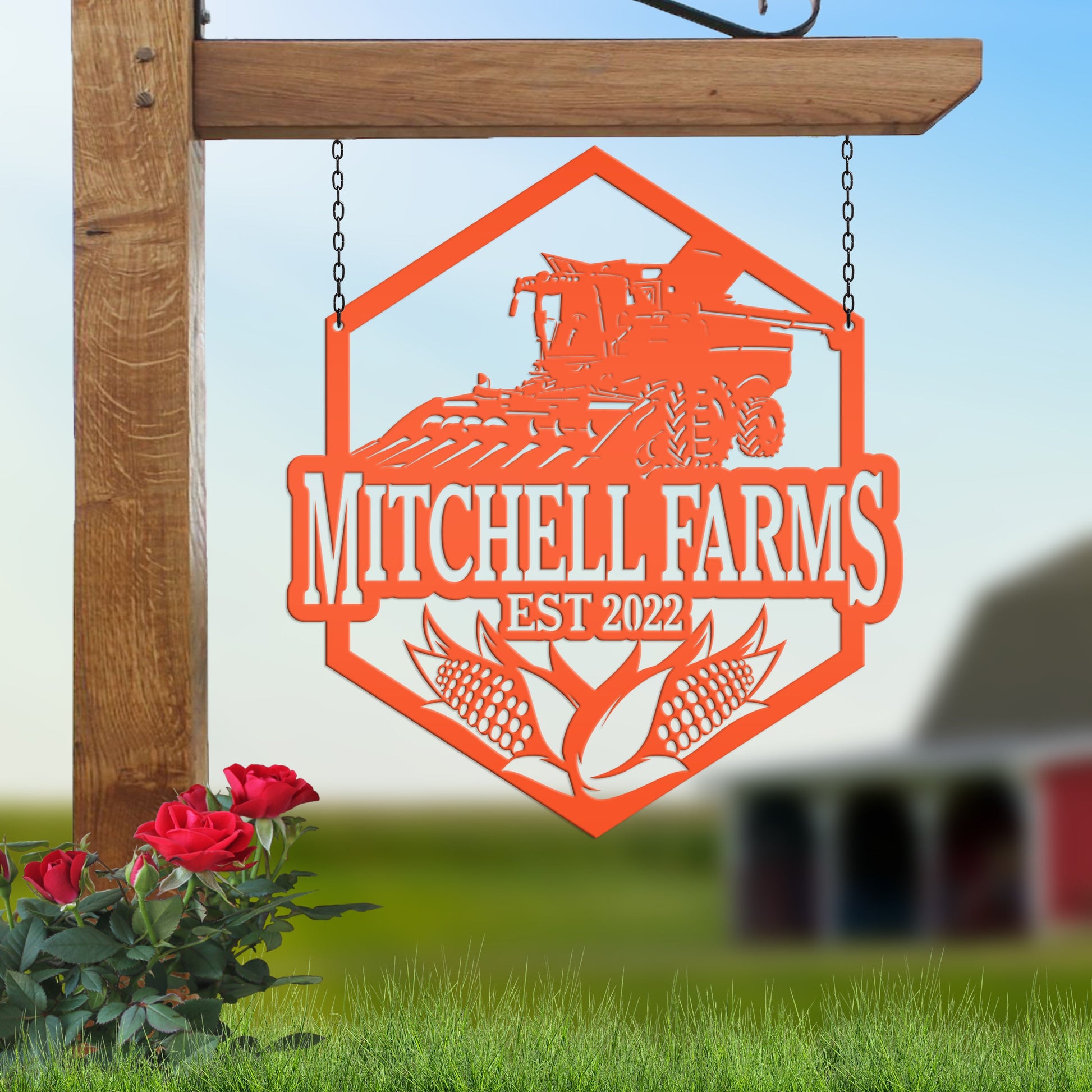 Joycorners Personalized Corn and Combine Metal Sign, Farmhouse Metal Wall Decor, Combine Wall Art, Combine Wall Decor, Farm Wall Decor, Fathers Day Gift, Gift for Farmer LM0110