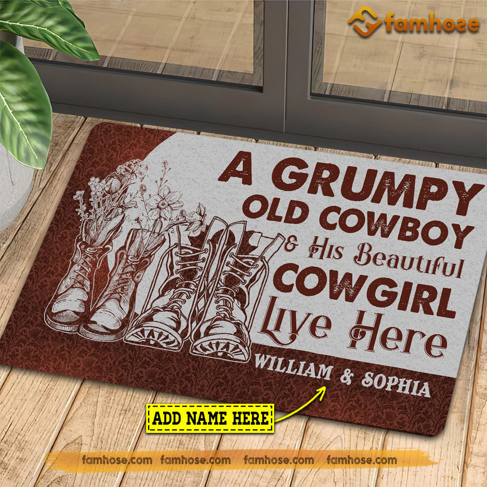 Joycorners Personalized Cowboy Doormat, A Grumpy Old Cowboy His Cowgirl Live Here Gift For Cowboy, New Home Gift, Housewarming Gift, Cowboy Decor LM0210