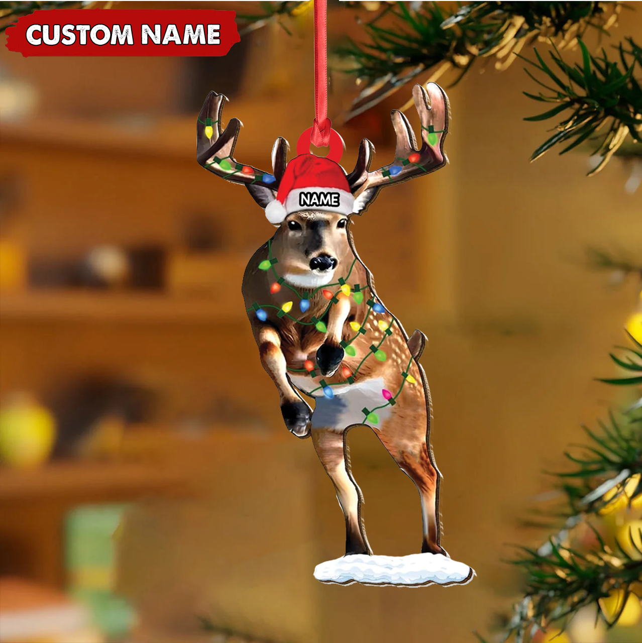 Joycorners Personalized Deer Acrylic Christmas Ornament – Custom Name Buck with Lights Holiday Gift MT1111