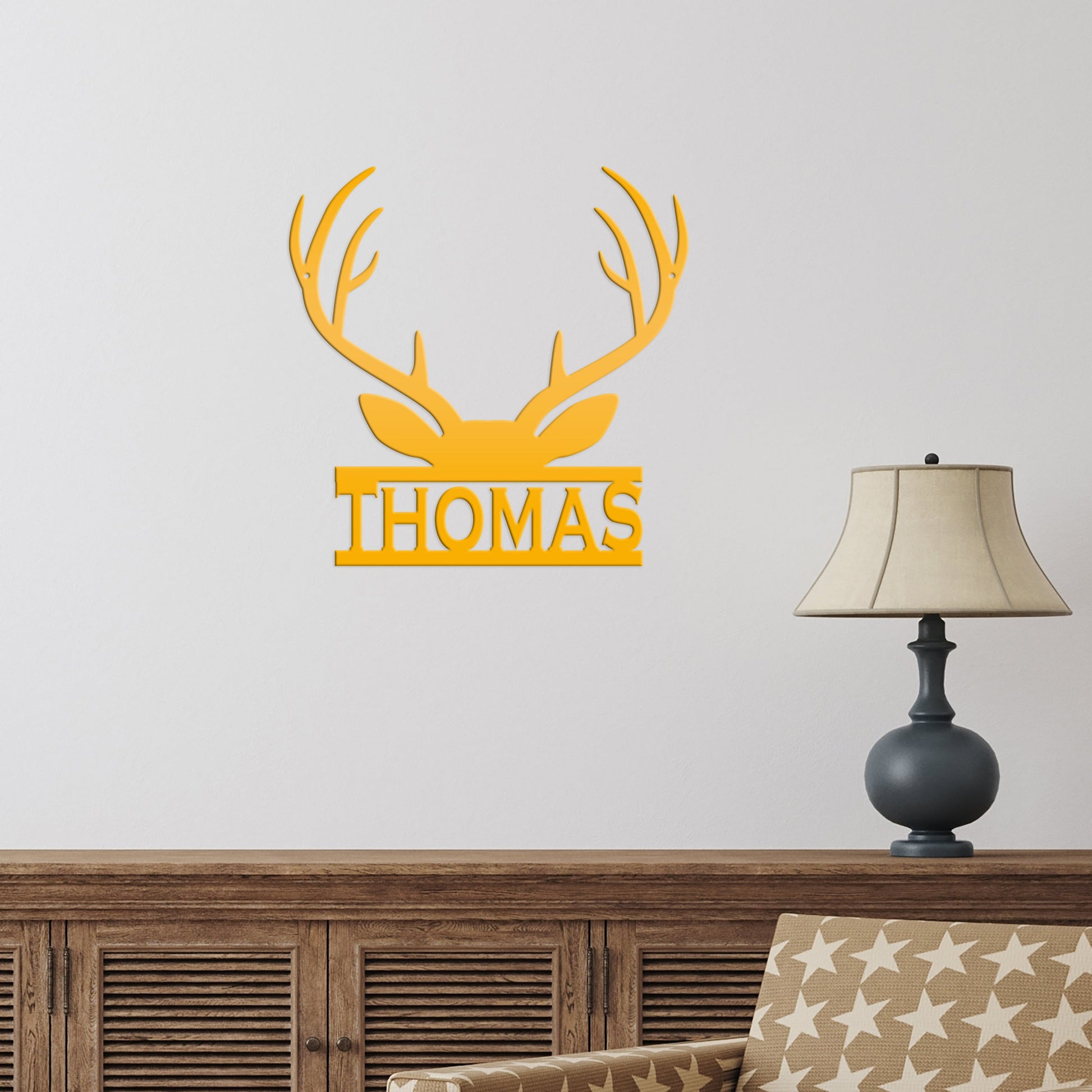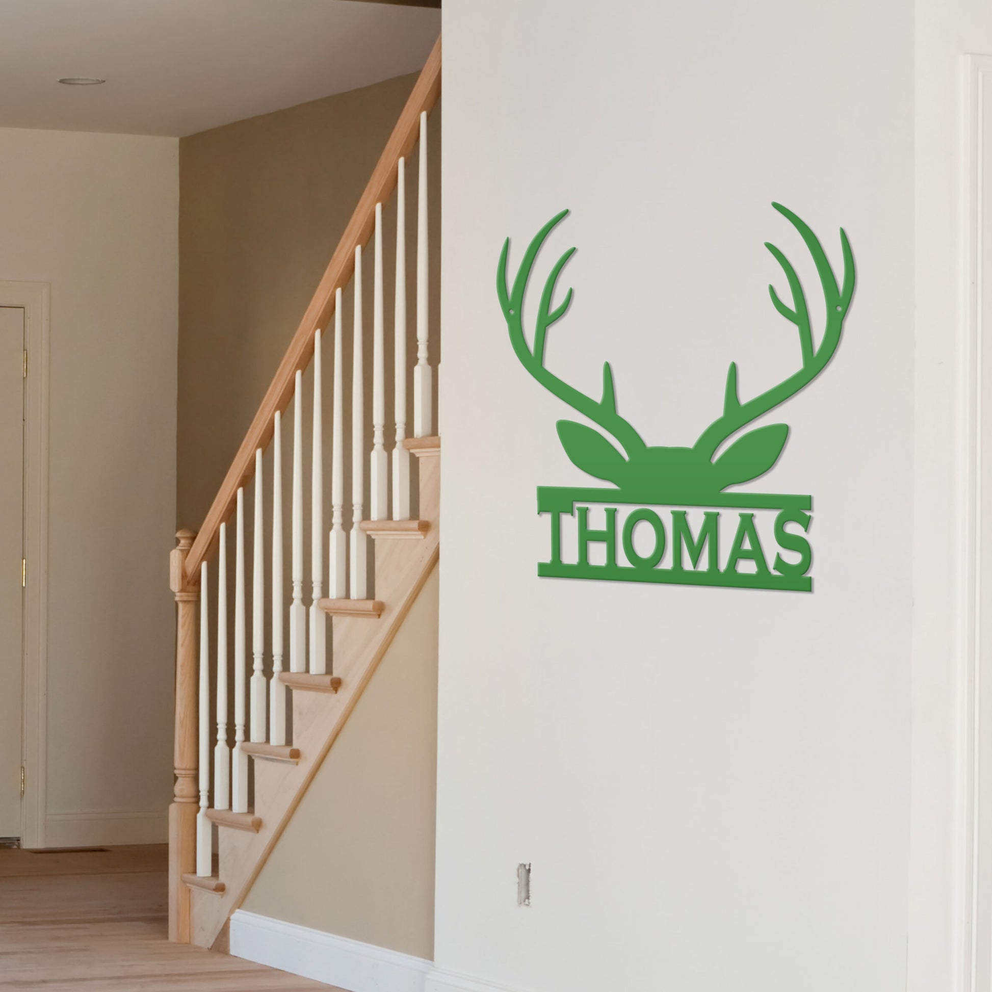 Joycorners Personalized Deer Antler Monogram Metal Sign-Deer Antlers Decor-Deer Cabin Sign LM0110
