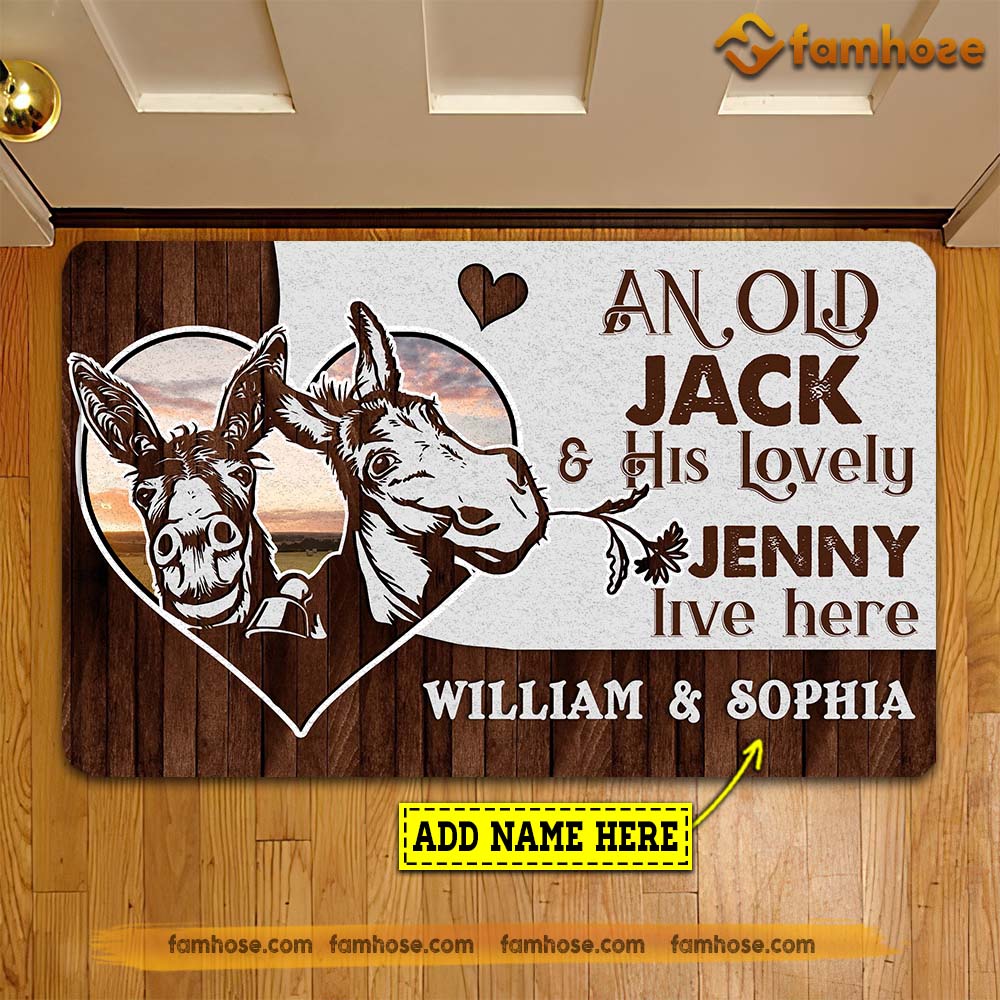 Joycorners Personalized Donkey Doormat, An Old Jack His Lovely Jenny Live Here Gift For Donkey Lovers, New Home Gift, Housewarming Gift, Donkey Decor LM0210