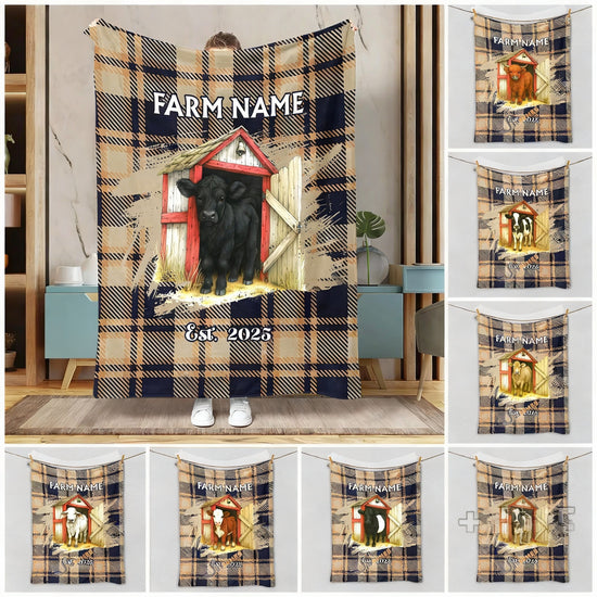 Joycorners Personalized Farm Name & Established Year Barn Door Blanket (10 Cattle Breeds)