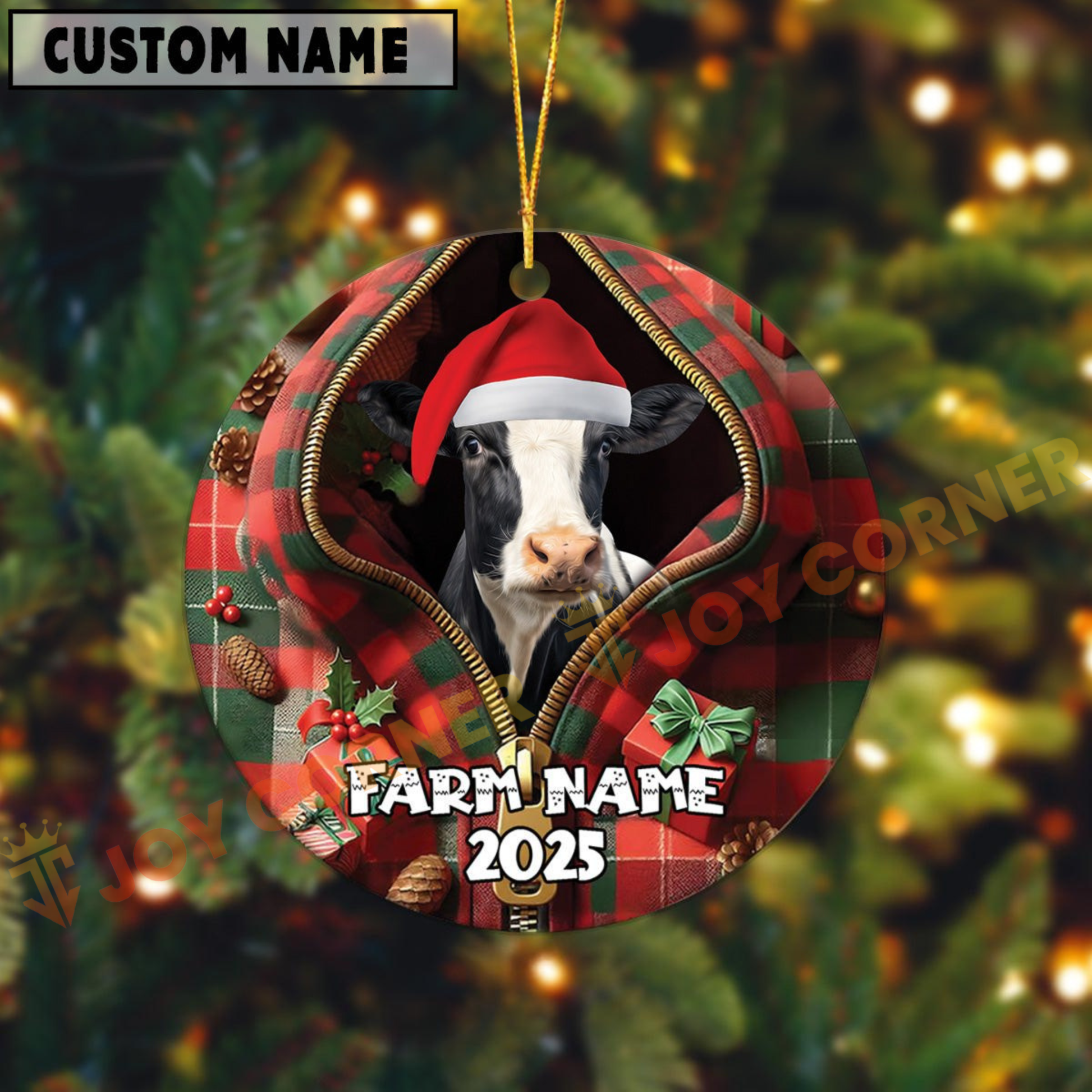 Joycorners Personalized Farm Name Merry Holstein Farm Plaid Ornament