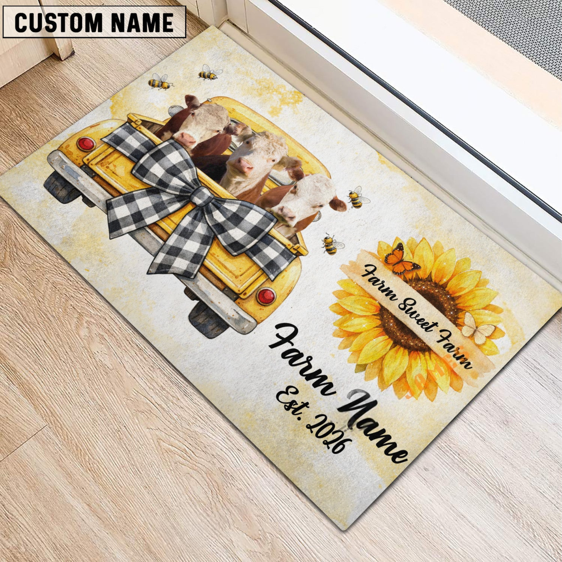Joycorners Personalized Farm Sweet Farm Custom Cow Truck Doormat(10 Cattle Breeds)