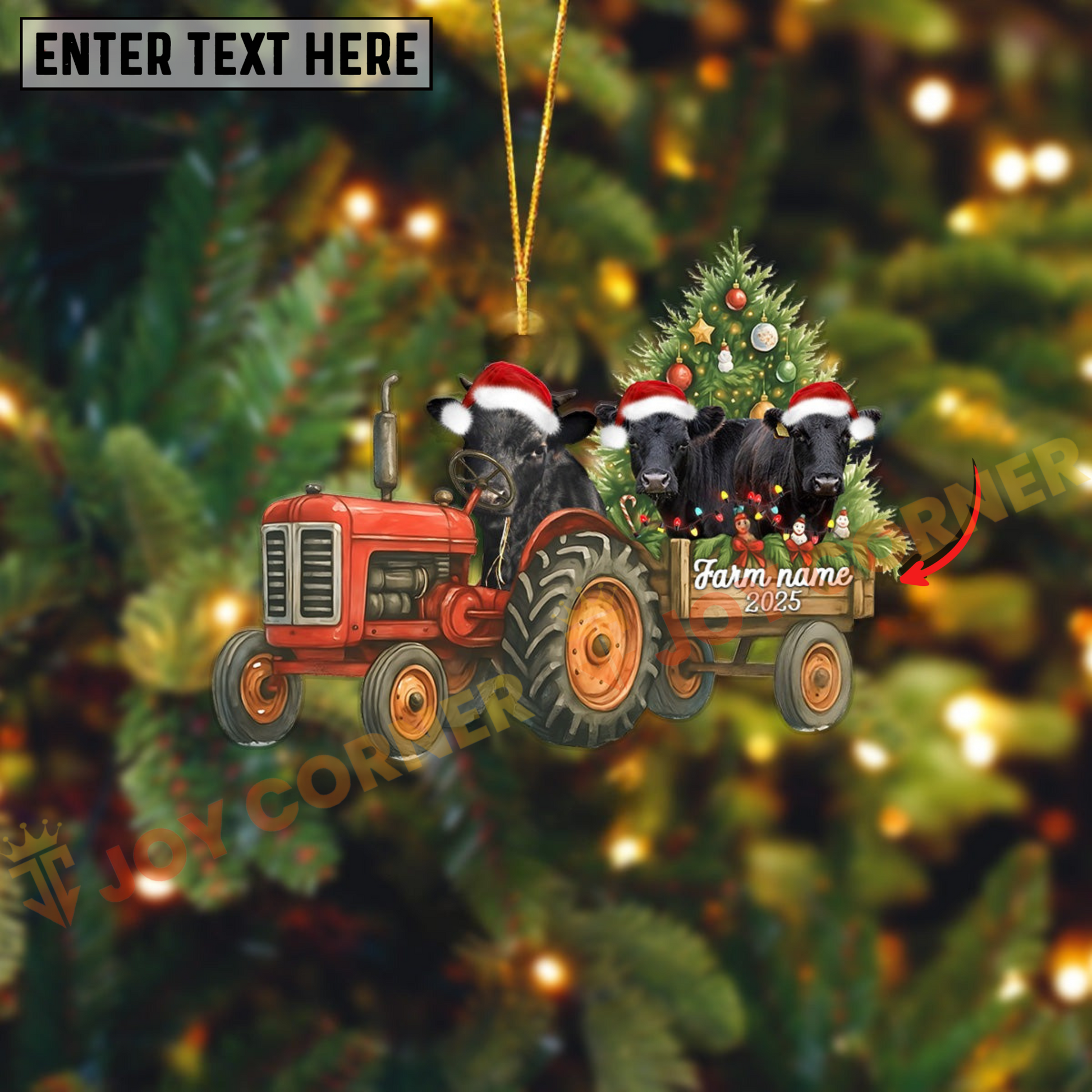 Joycorners Personalized Farm Tractor Christmas Ornament with Dexter & Tree Acrylic Ornament