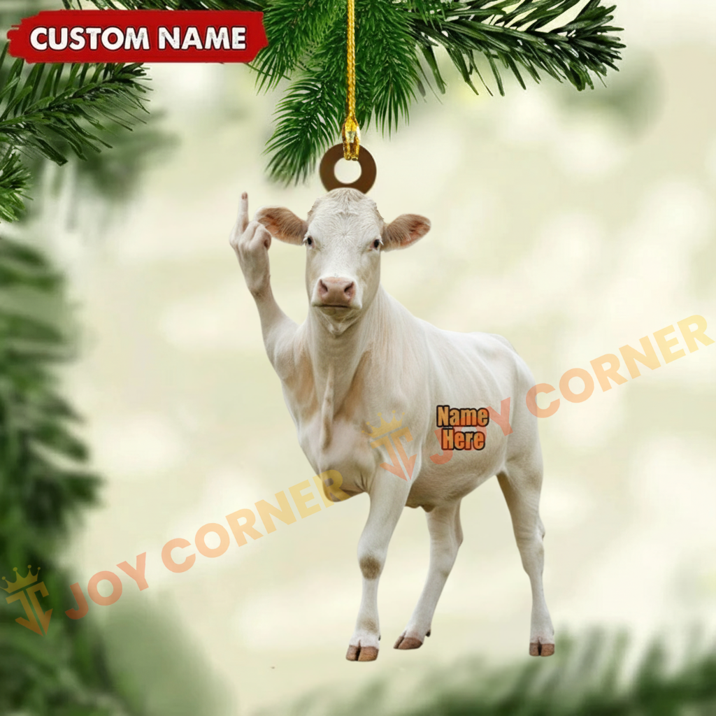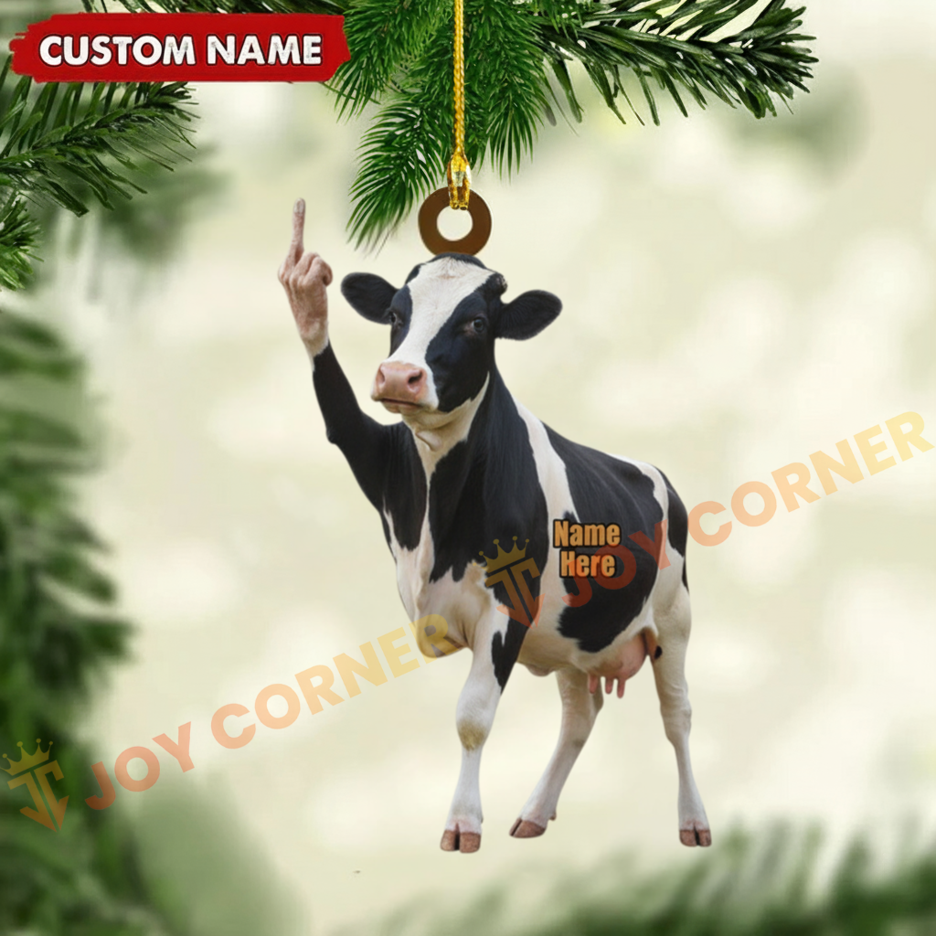 Joycorners Personalized Funny Christmas Gifts Funny Fukin' Finger Cow Ornament, Acrylic Ornament (7 Breed Options)