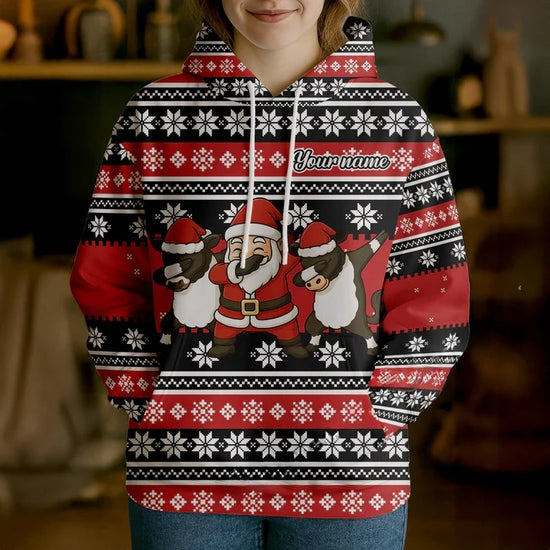 Joycorners Personalized Funny Farm Santa Christmas Sweater Hoodie (8 Cattle Breeds)