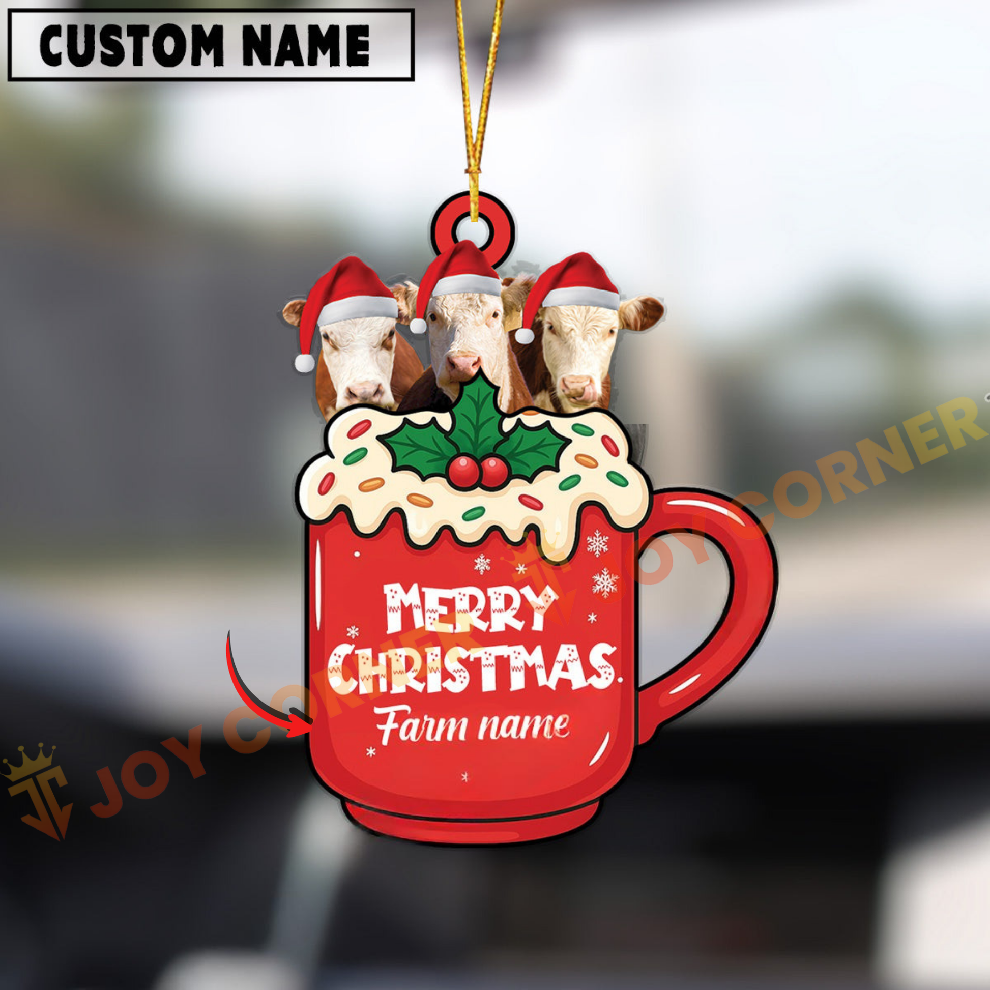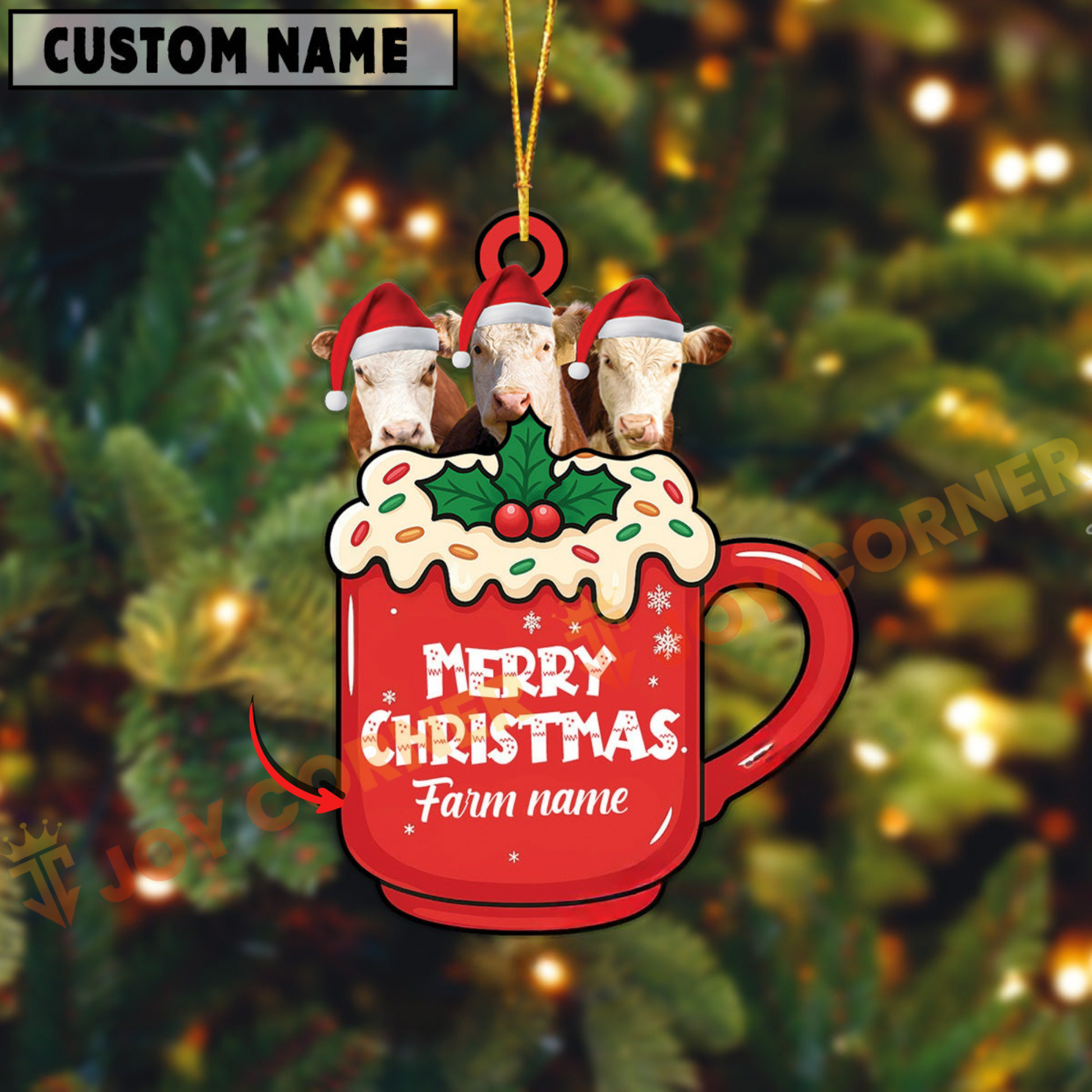 Joycorners Personalized Hereford Merry Christmas Farm Mug Ornament