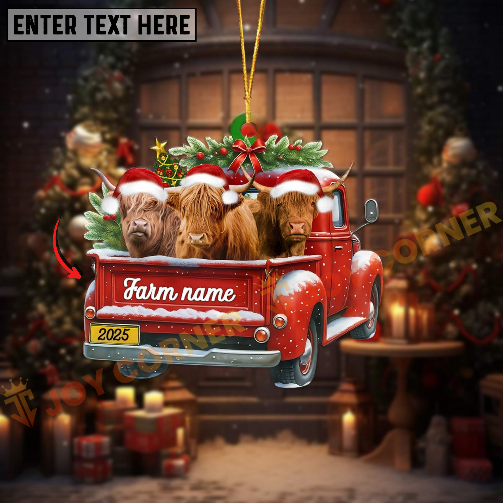 Joycorners Personalized Highland Christmas Farm Truck Custom Shape Acrylic Ornament