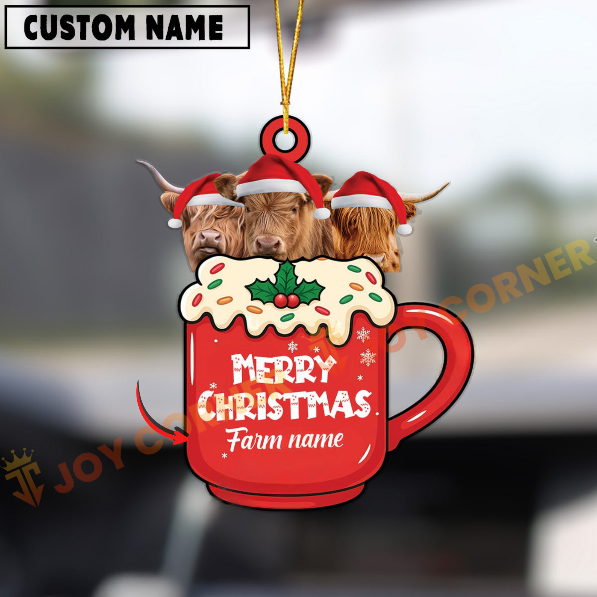 Joycorners Personalized Highland Merry Christmas Farm Mug Ornament
