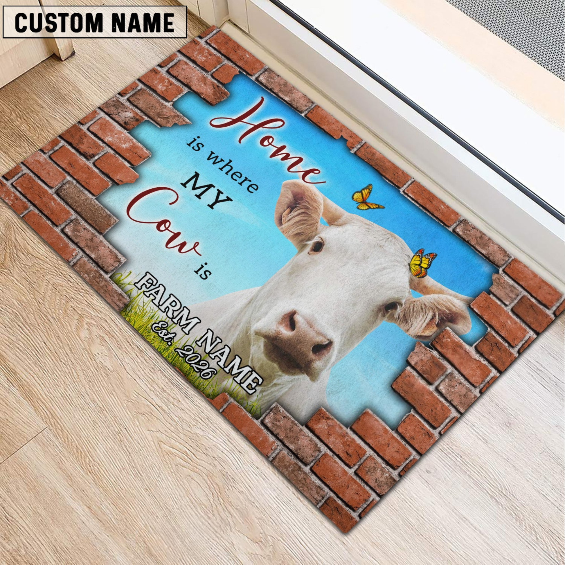 Joycorners Personalized Home Is Where My Cow Is Custom Farm Doormat (10 Cattle Breeds)