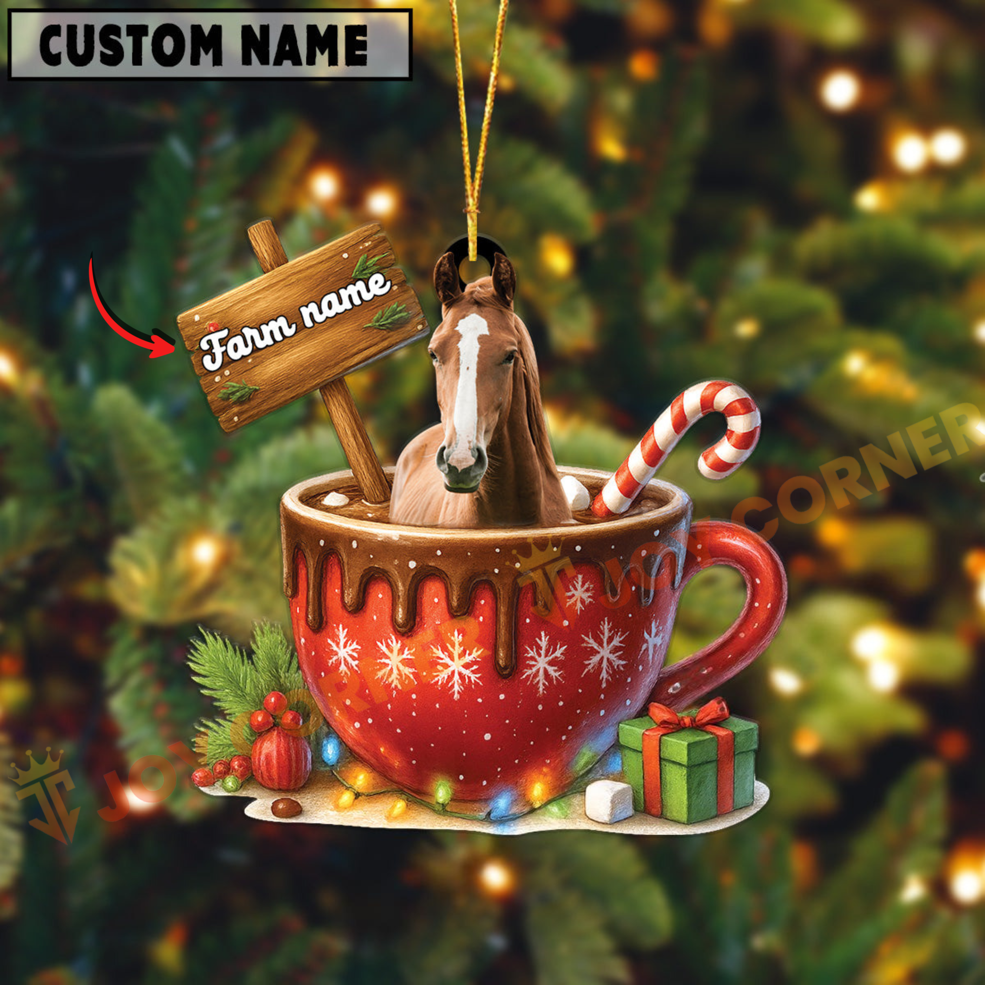 Joycorners Personalized Horse Moo-ry Christmas Cocoa Mug Acrylic Ornament