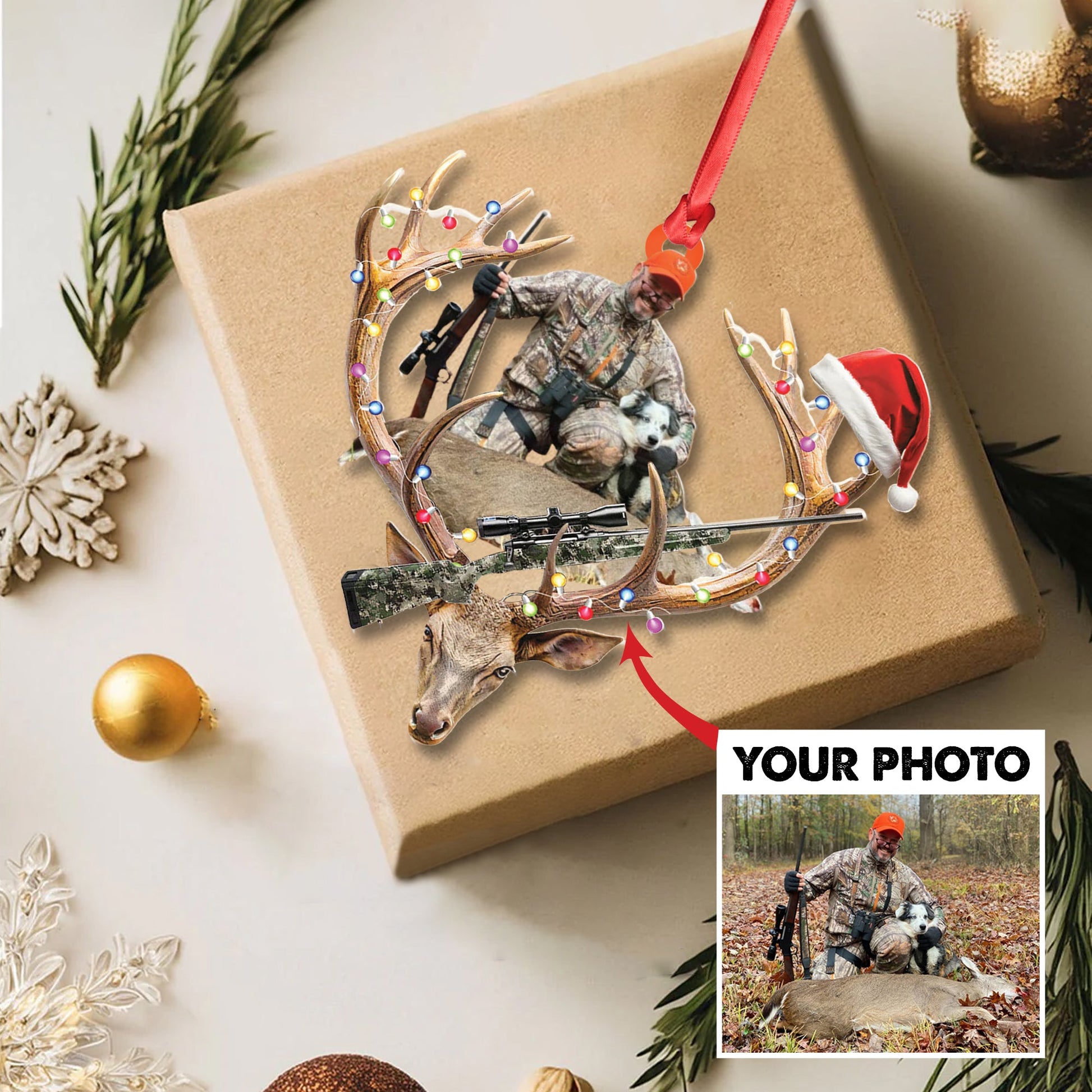 Joycorners Personalized Hunting Aclyric Christmas Ornament – Custom Photo Deer Antler Gift for Hunters MT1111