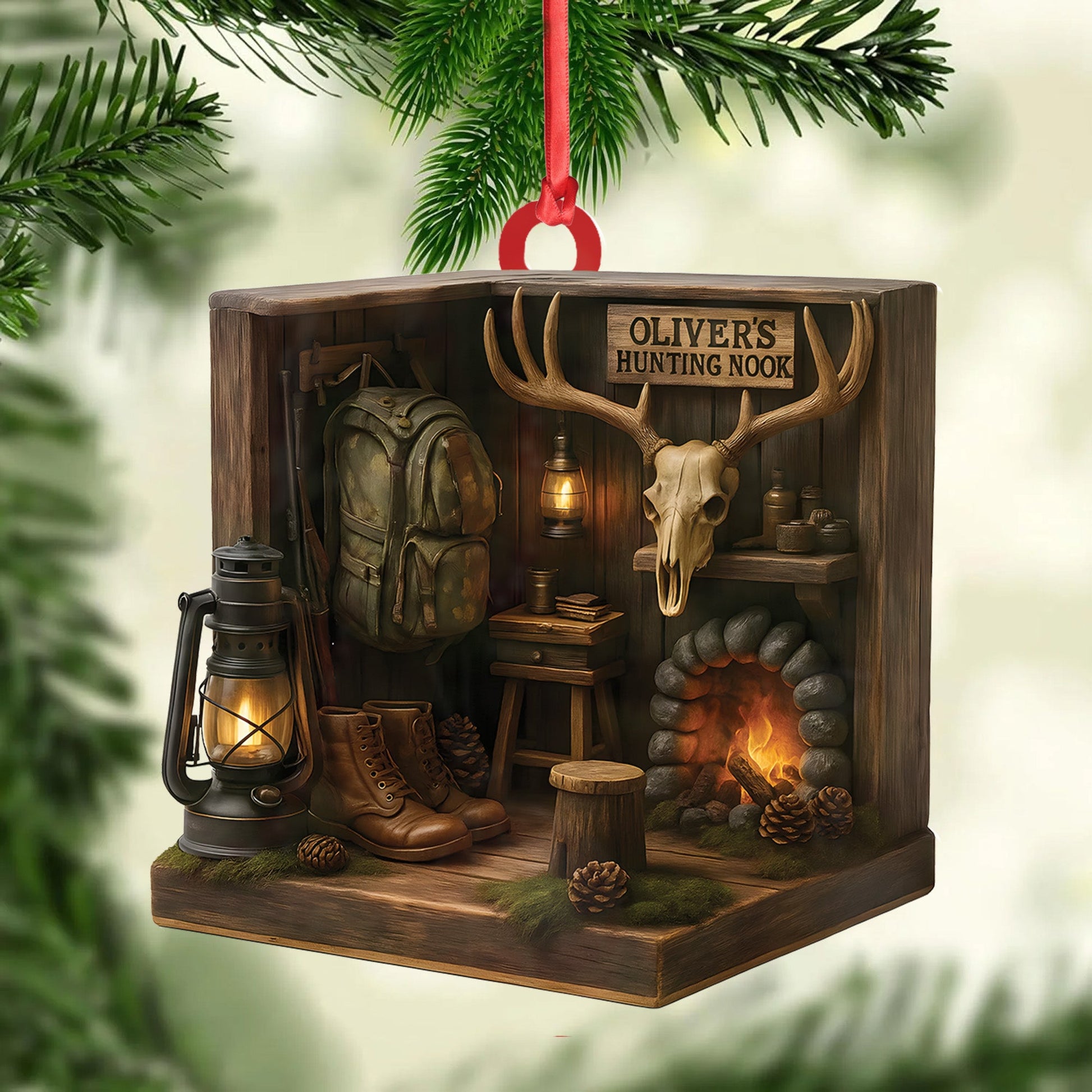 Joycorners Personalized Hunting Cabin Ornament, Custom Name Deer Antler Lodge Christmas Decoration MT1111