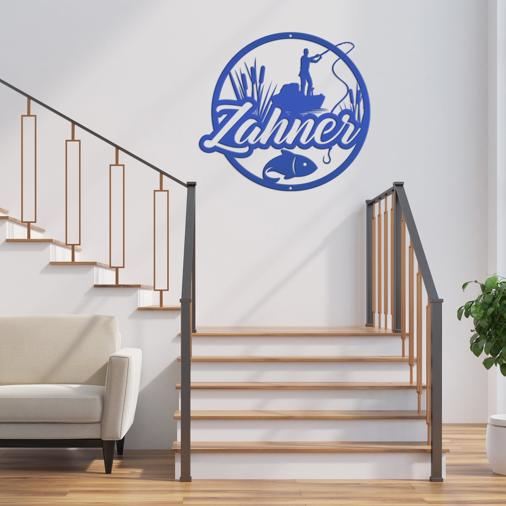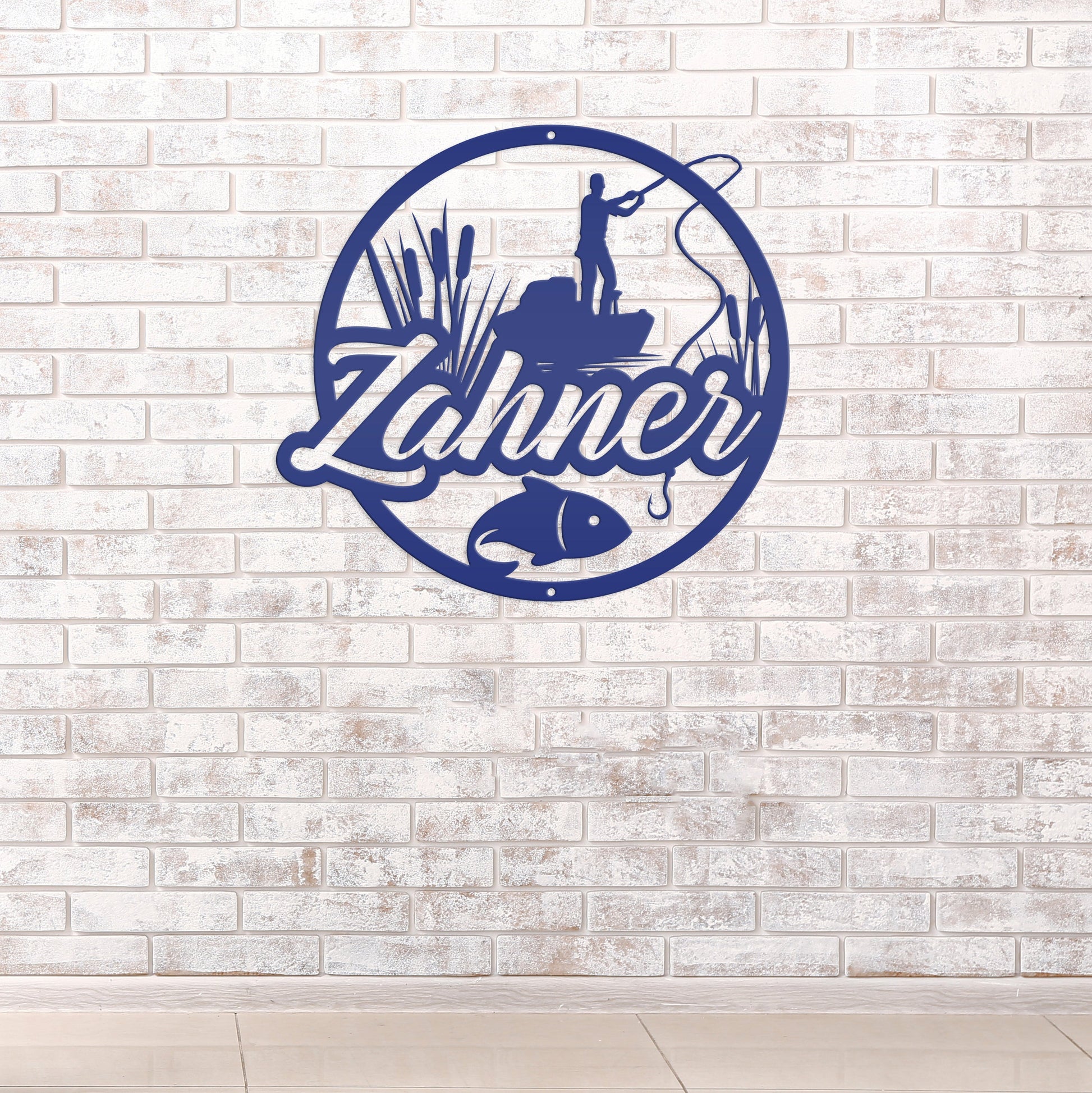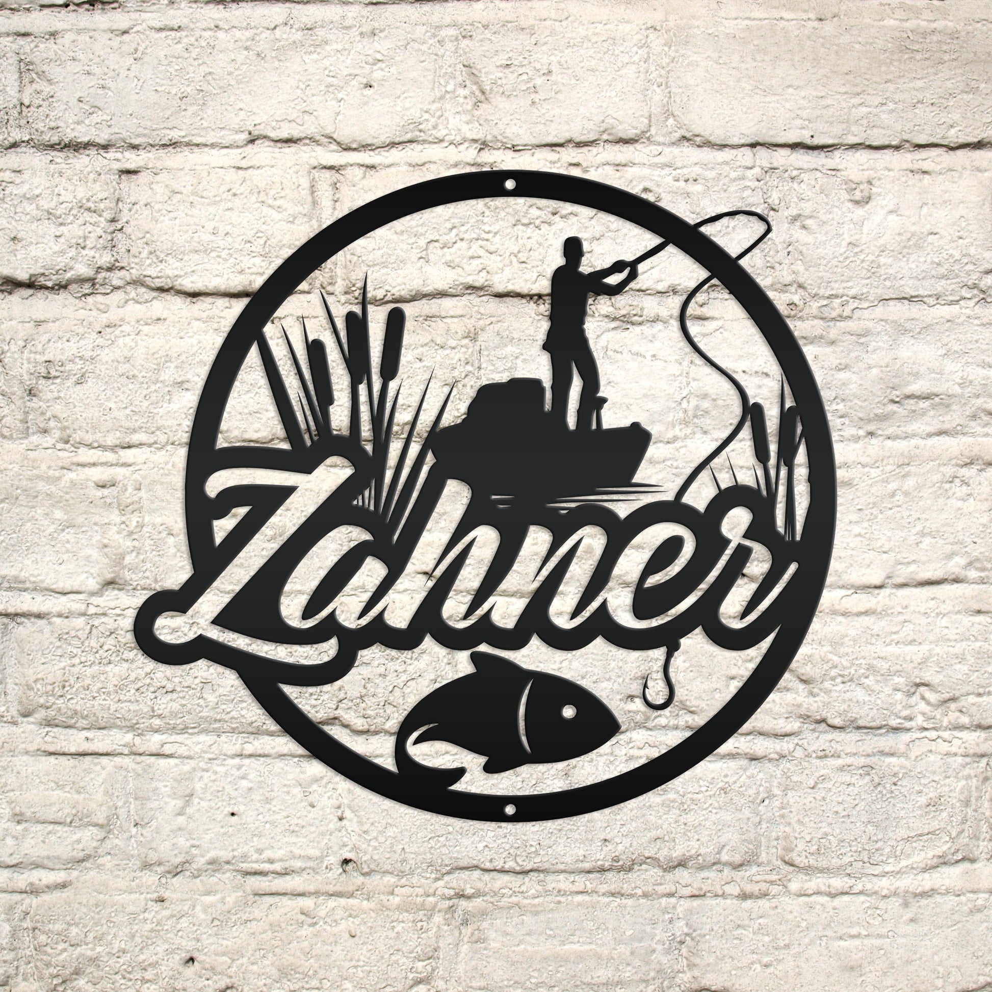 Joycorners Personalized Lake Fishing Scene Metal Sign - Indoor Outdoor - Fishing Theme Decor LM0110