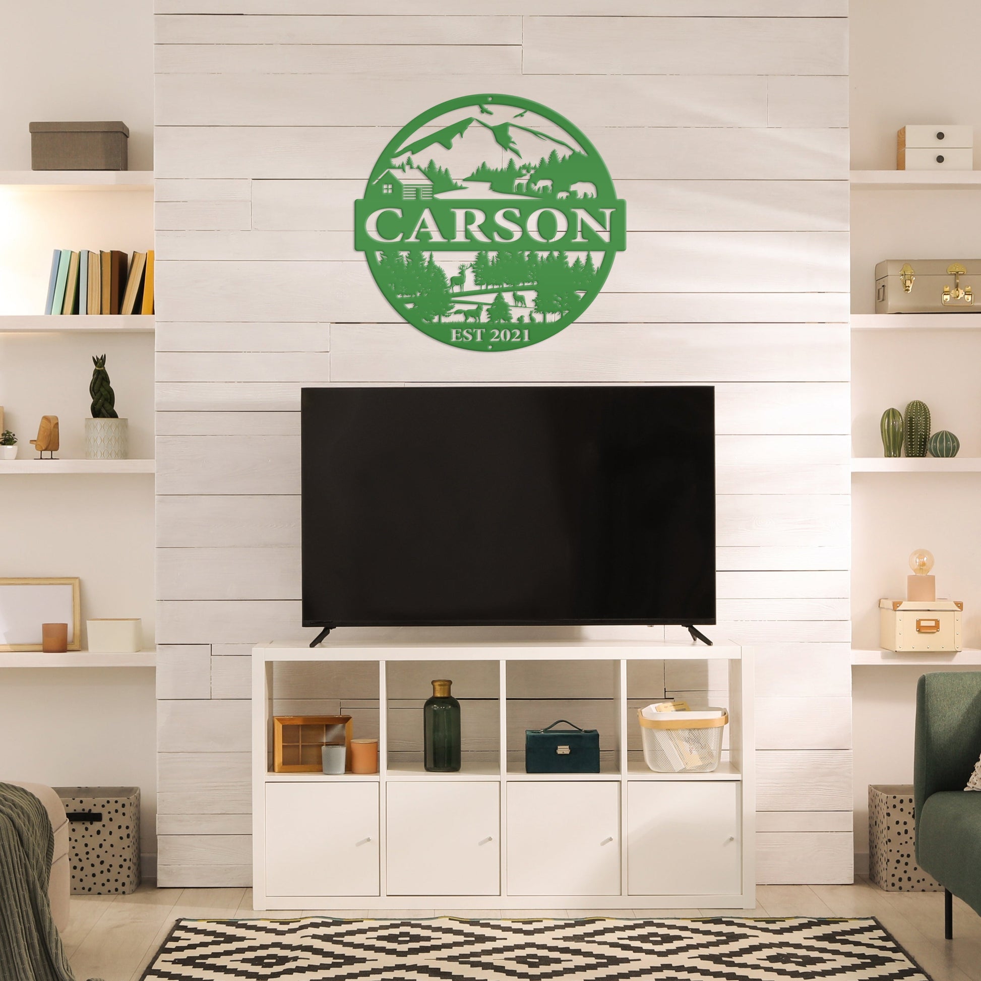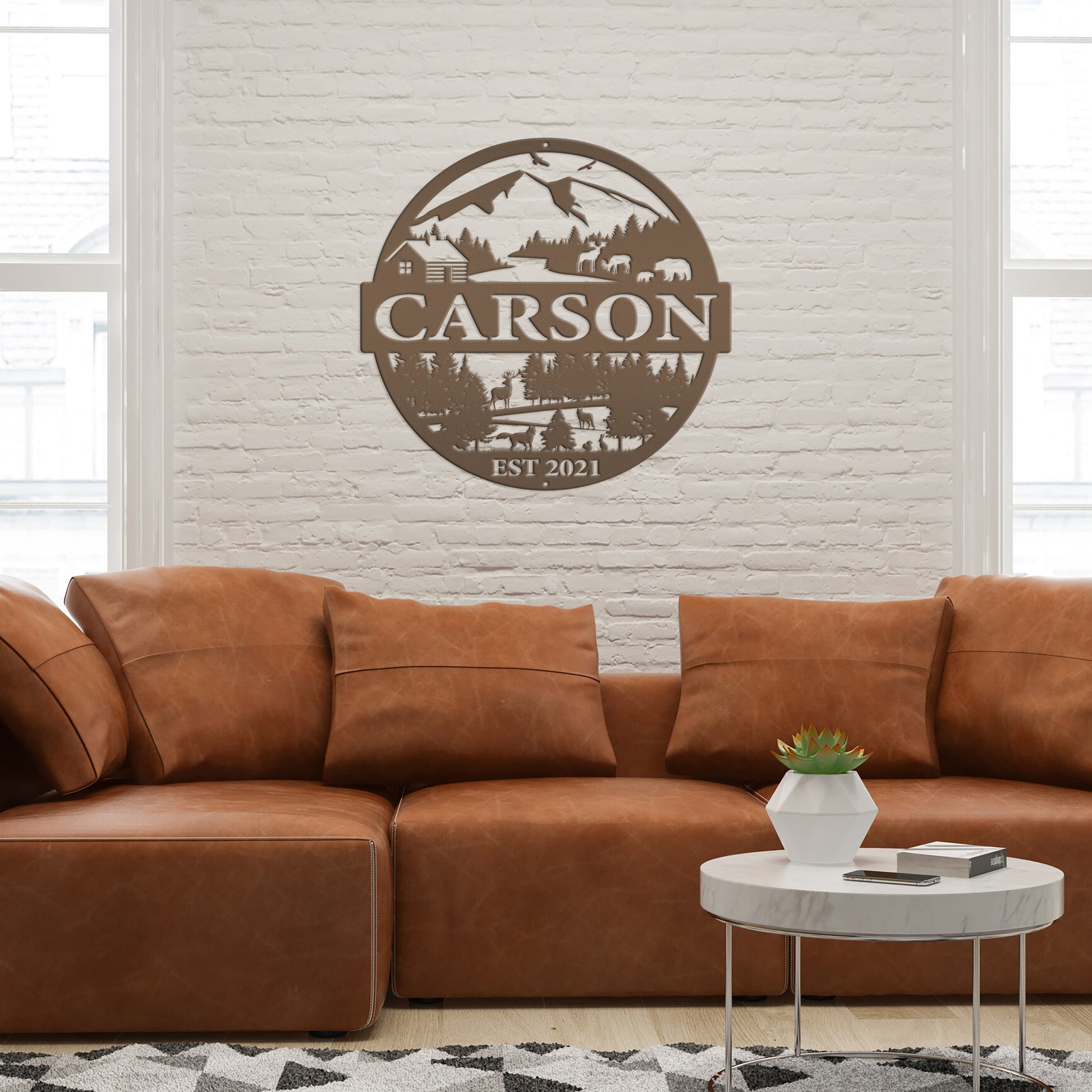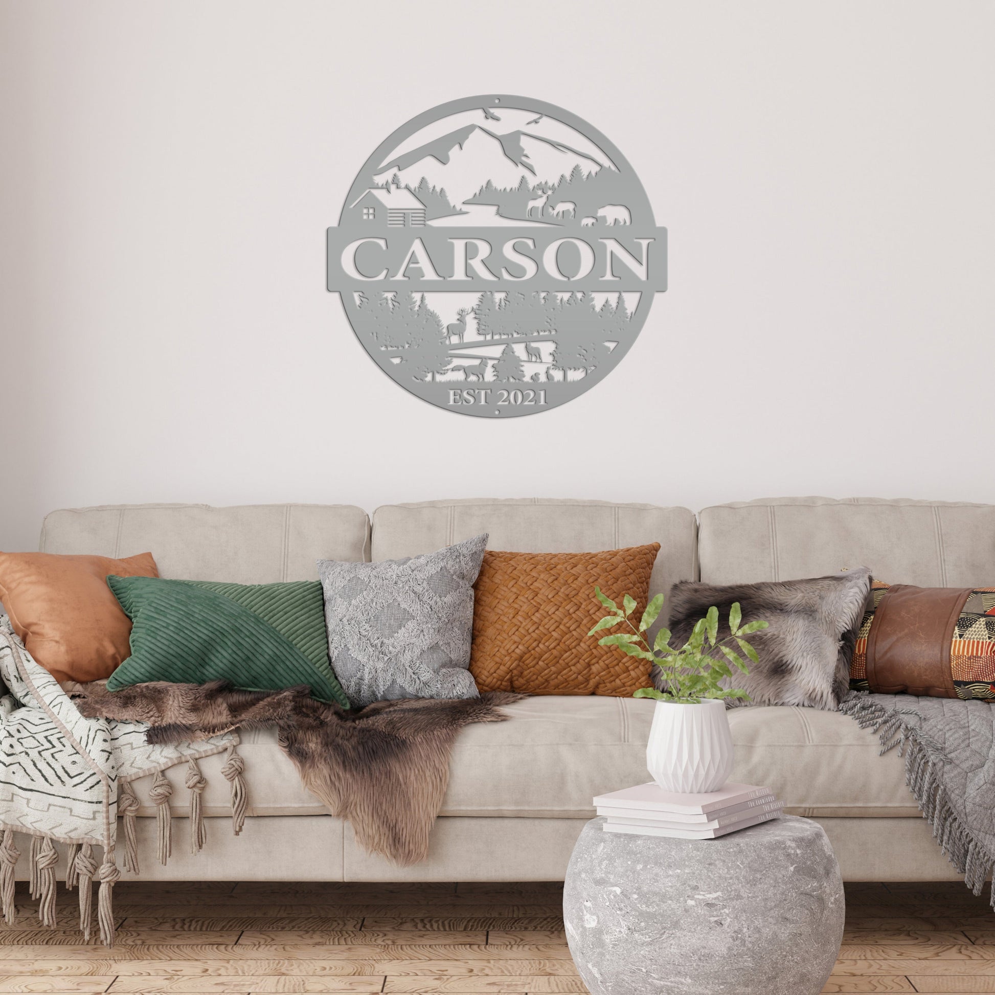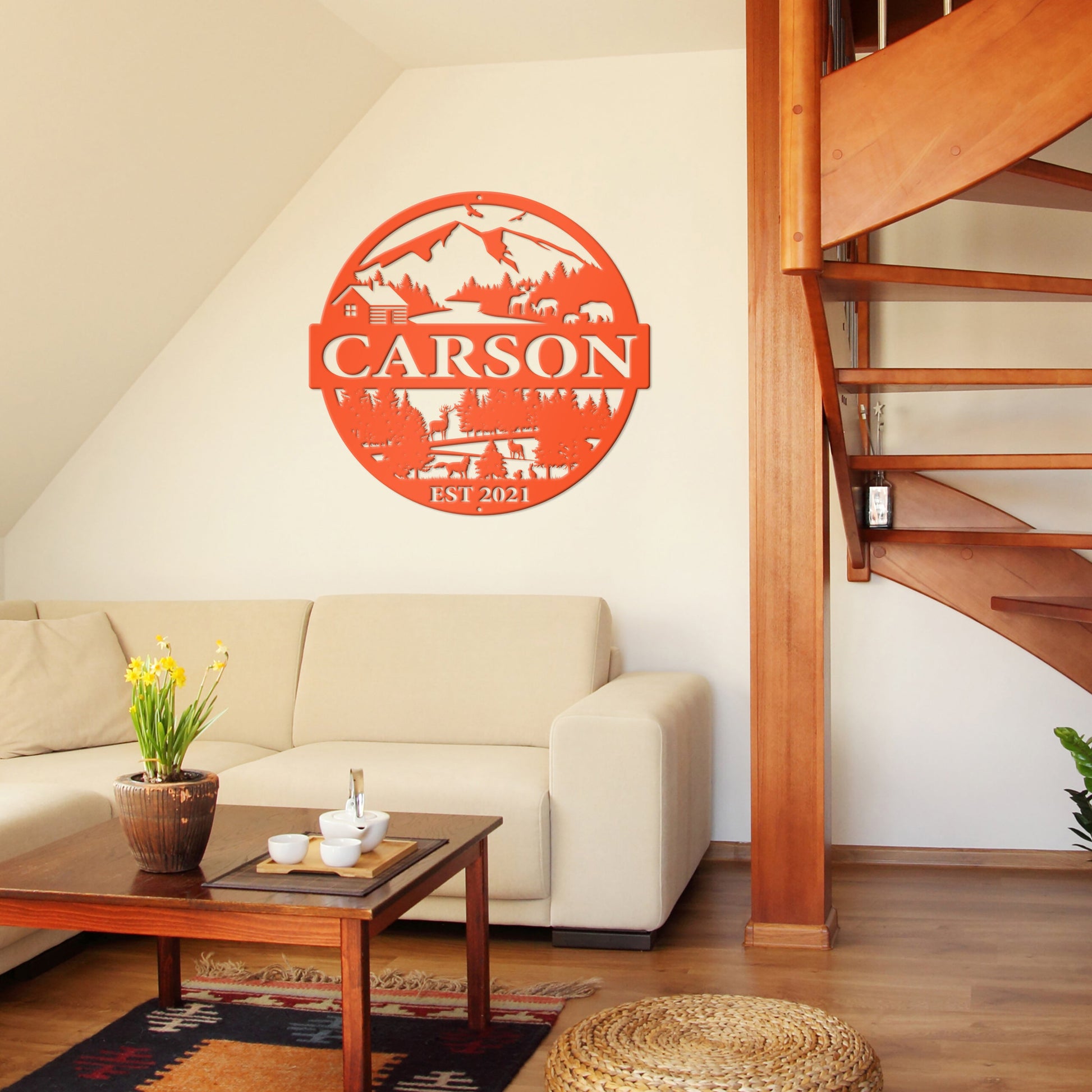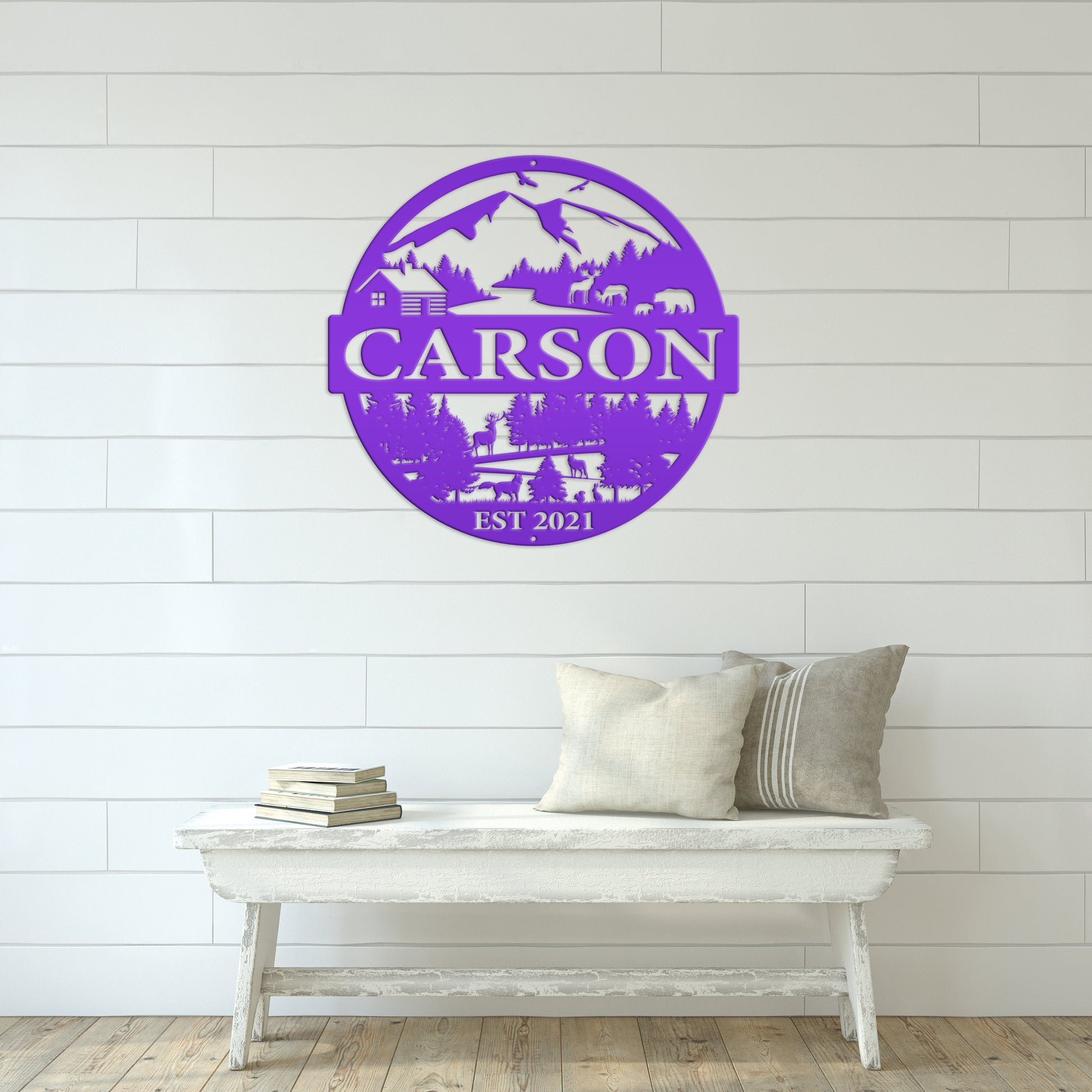 Joycorners Personalized Mountain Cabin Scene with Established Date Metal Sign-Cabin-Hunting Themed Sign-Decor-Outdoor Cabin-Lodge Decor LM0110