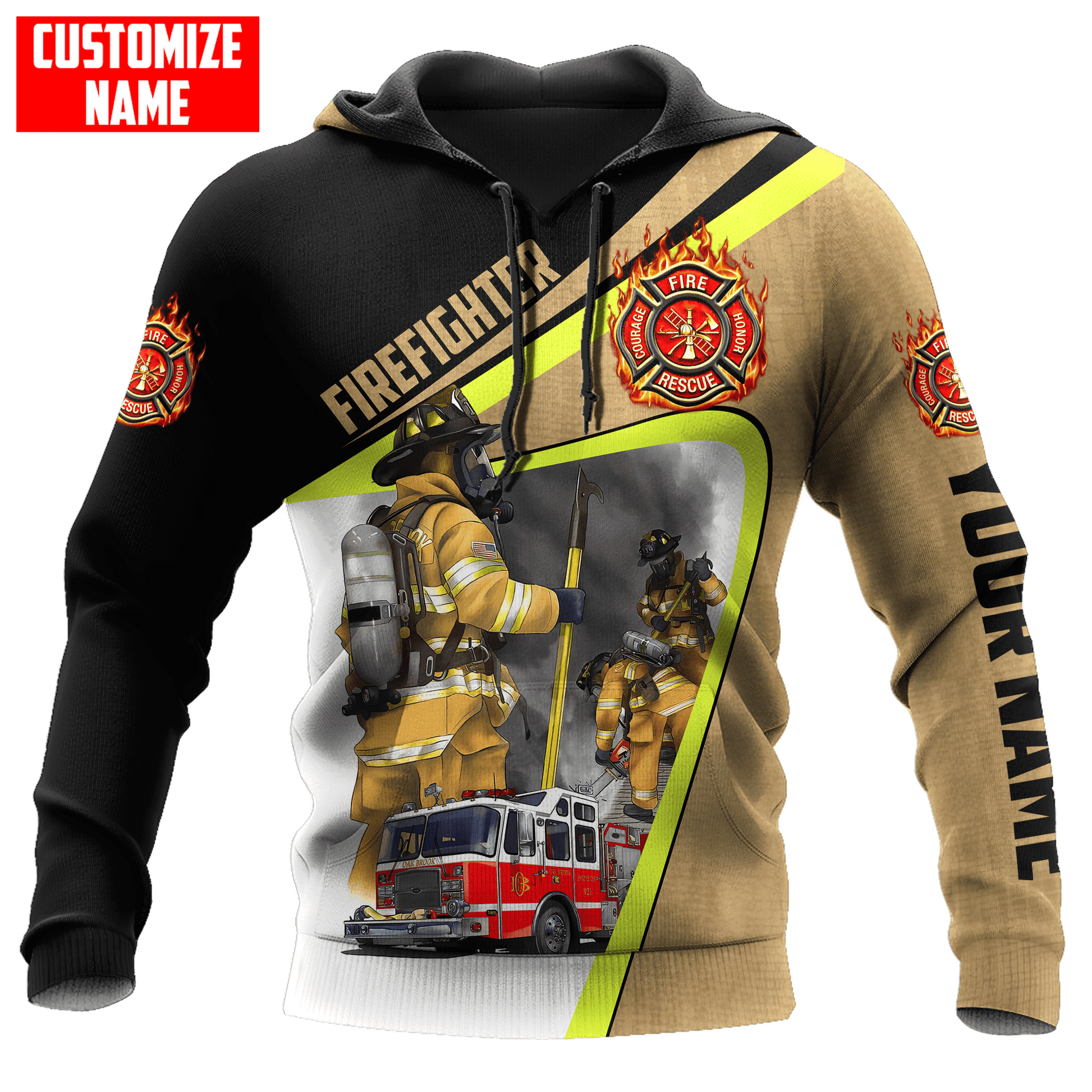 Joycorners Personalized Name Firefighter Fire Engine Fire Honor Rescue Courage All Over Printed 3D Shirts