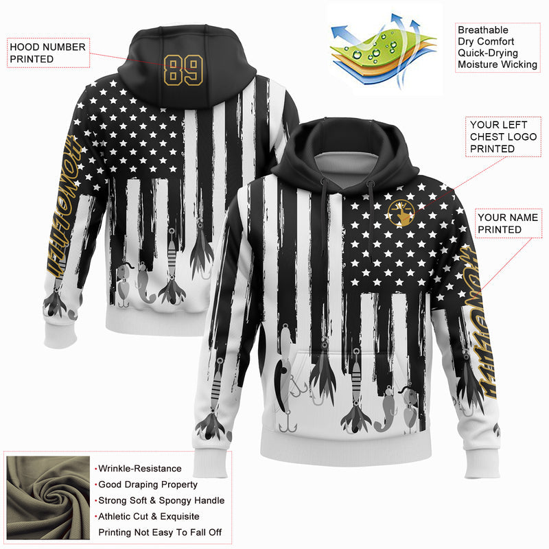 Joycorners Personalized Name Gold Black Fishing US Flag 3D Hoodie