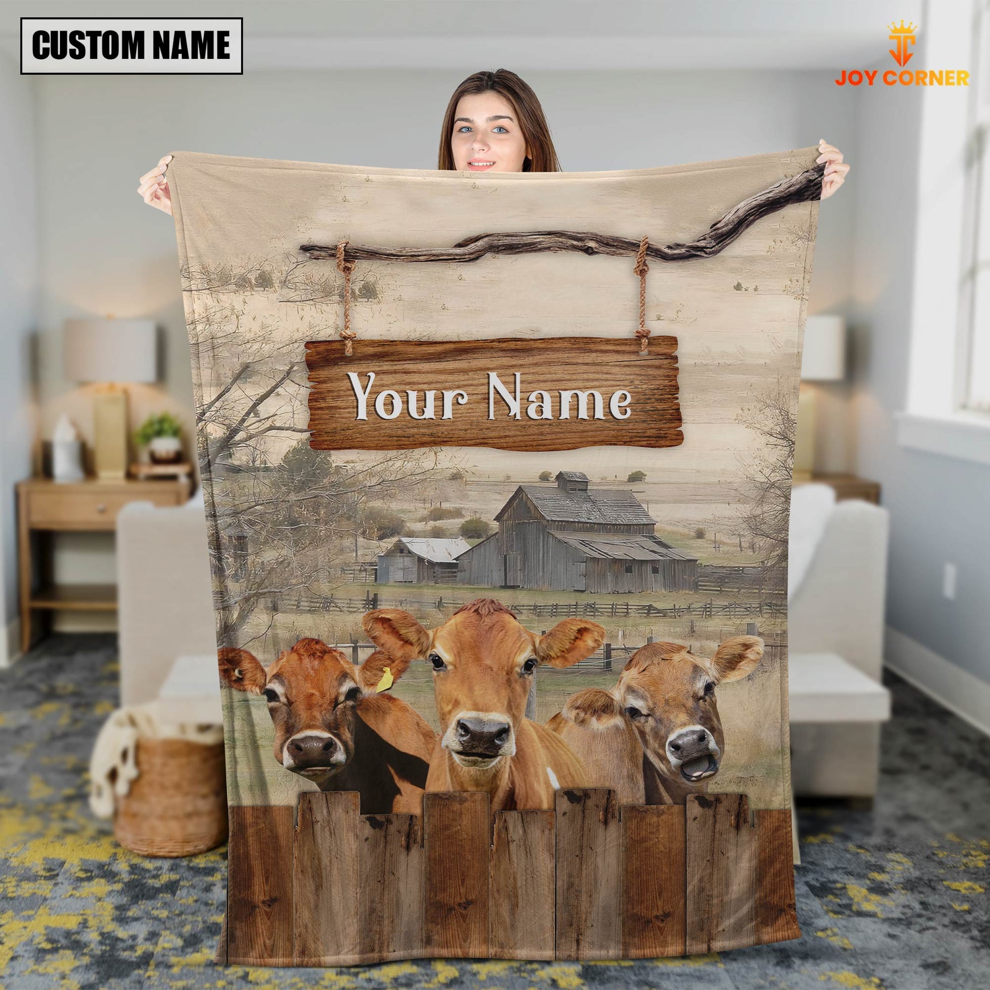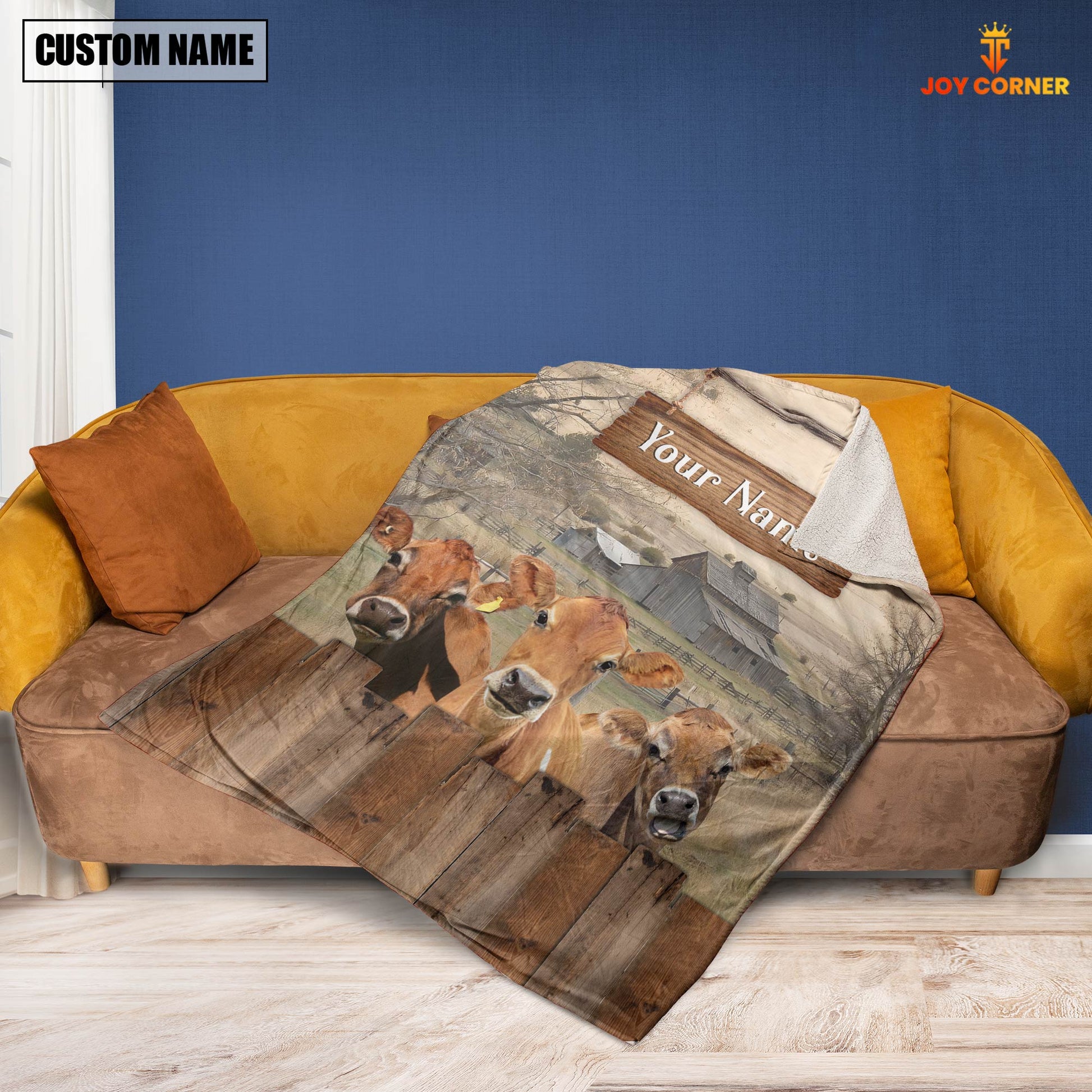 Joycorners Personalized Name Jersey Wooden Pattern Blanket