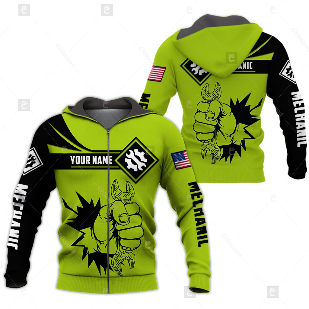 Joycorners Personalized Name Mechanic Is My Choice Shirt Wrench Tool Neon Style Hoodie Unisex Mechanic Apparel PT2609