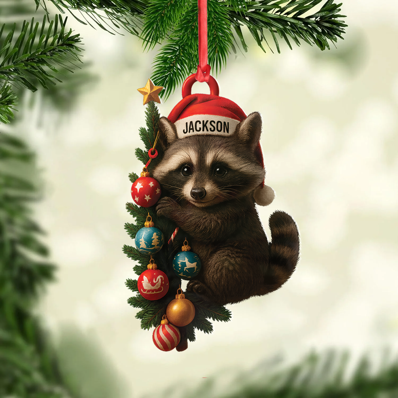 Joycorners Personalized Raccoon Acrylic Christmas Ornament – Cute Holiday Gift - Perfect Gift for Kids & Animal Lovers MT1111