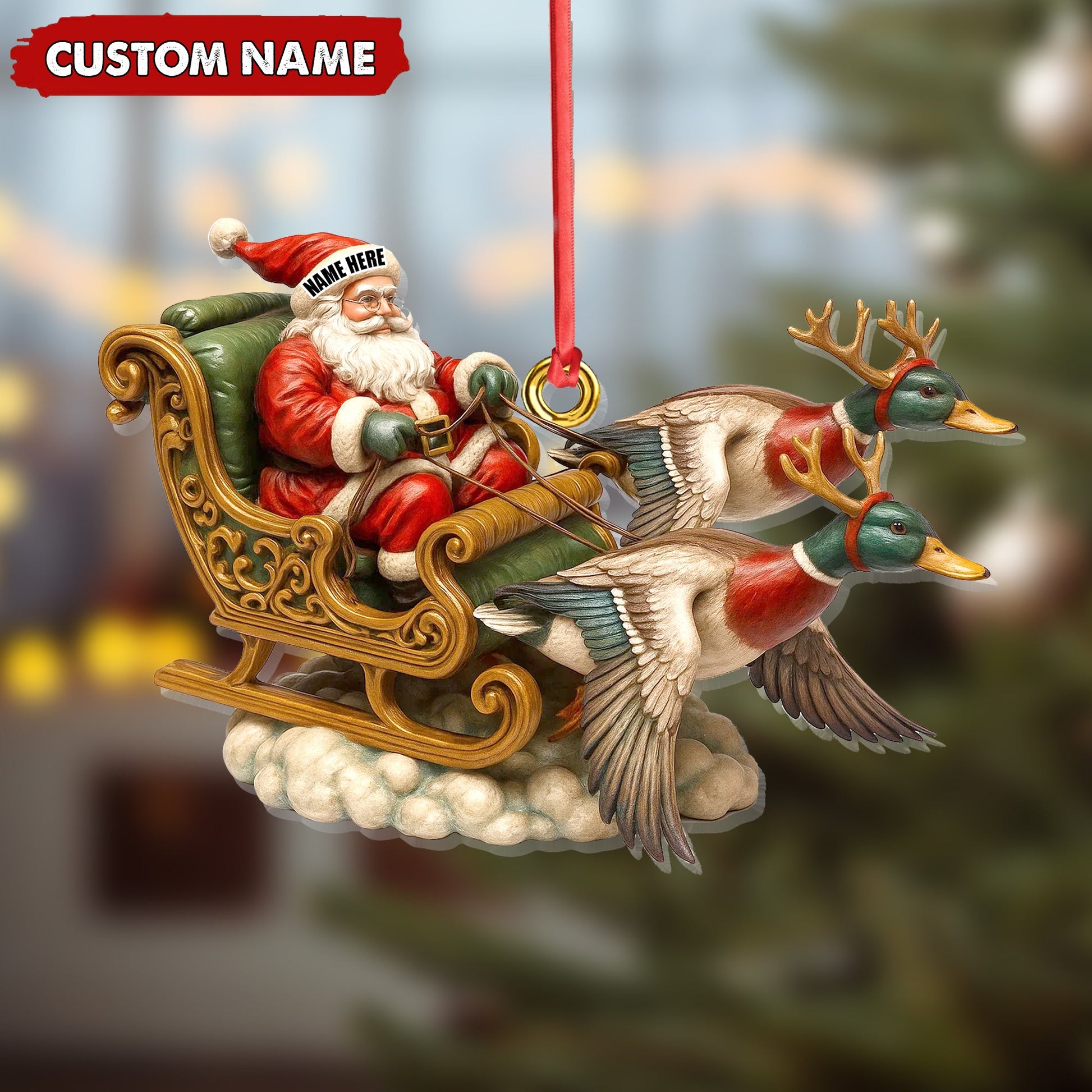 Joycorners Personalized Santa Sleigh Duck Ornament, Custom Name Christmas Gift for Hunters MT1111