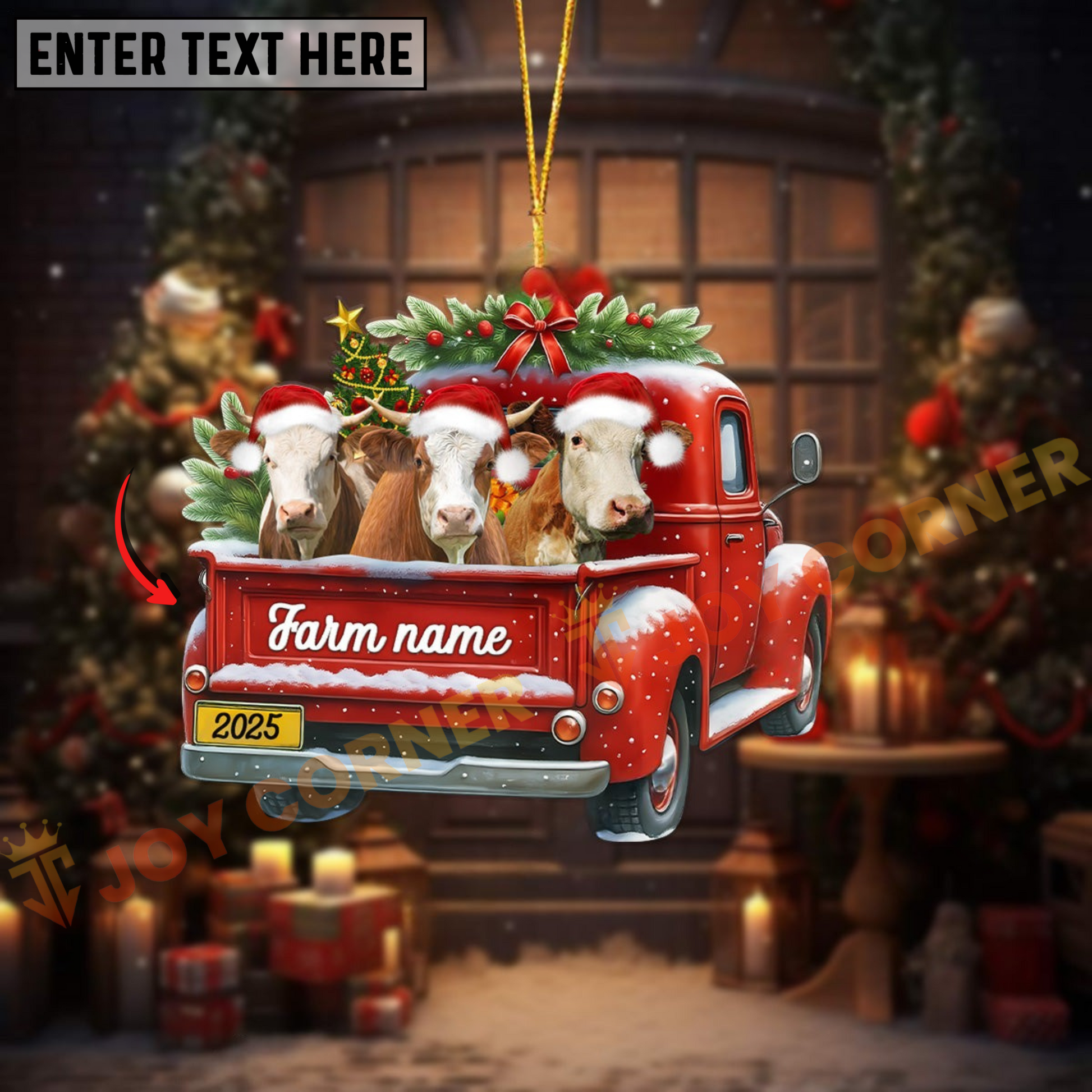 Joycorners Personalized Simmental Christmas Farm Truck Custom Shape Acrylic Ornament