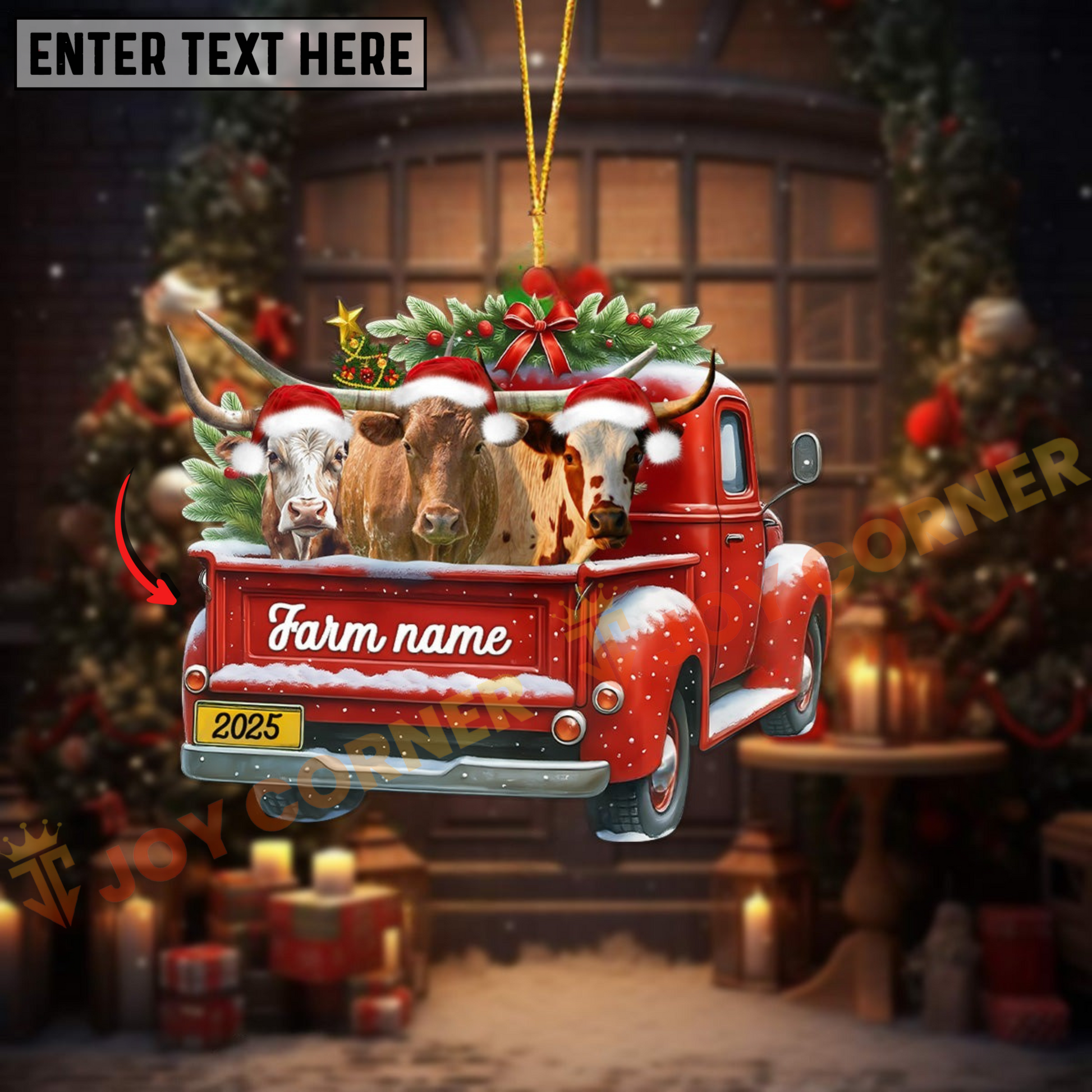 Joycorners Personalized Texas Longhorn Christmas Farm Truck Custom Shape Acrylic Ornament