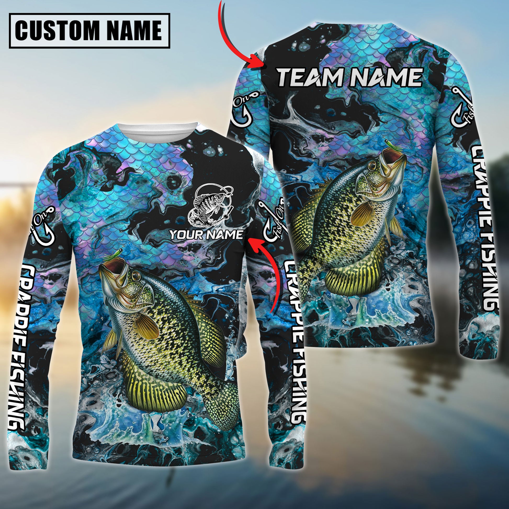 Joycorners Personalized Text Crappie Fishing Blue Fishing SkinPattern 3D Long Sleeve Shirt