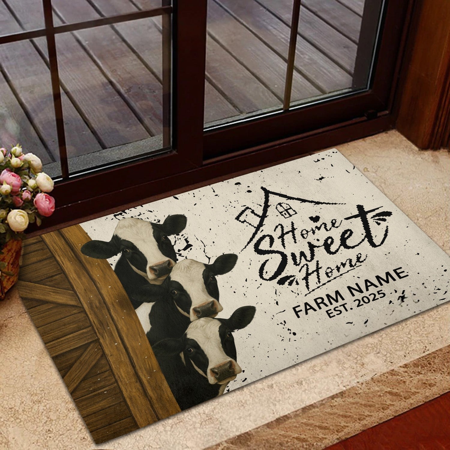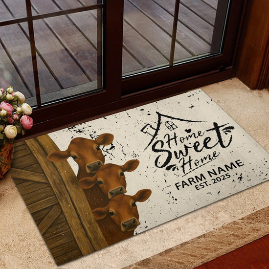Joycorners Personalized Three Cows Home Sweet Home Doormat (10 Cattle Breeds)