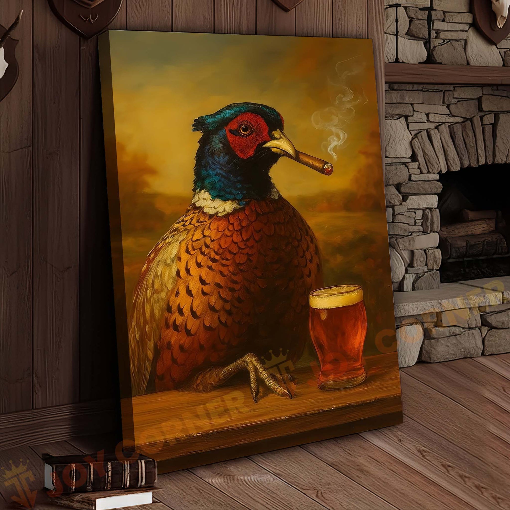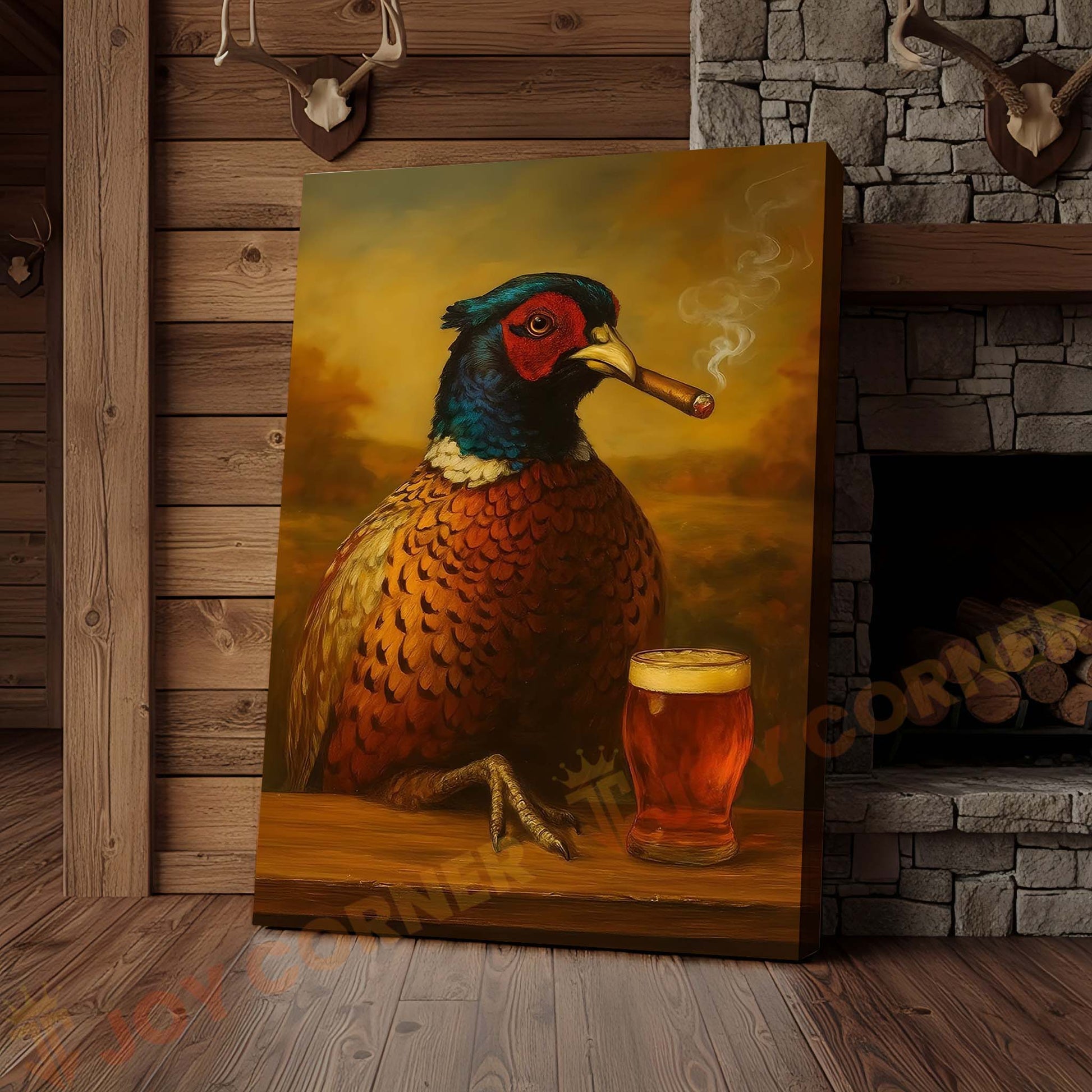 Joycorners Pheasant with Beer Glass and Smoke Wrapped Canvas
