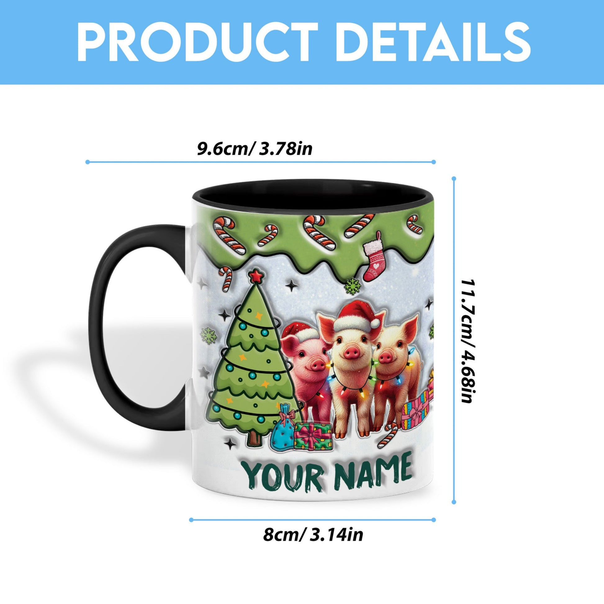 Joycorners Pig Christmas Personalized Name Two Tone Mug
