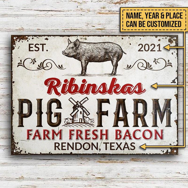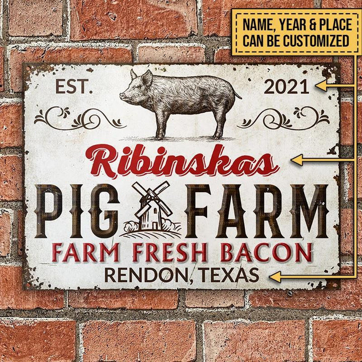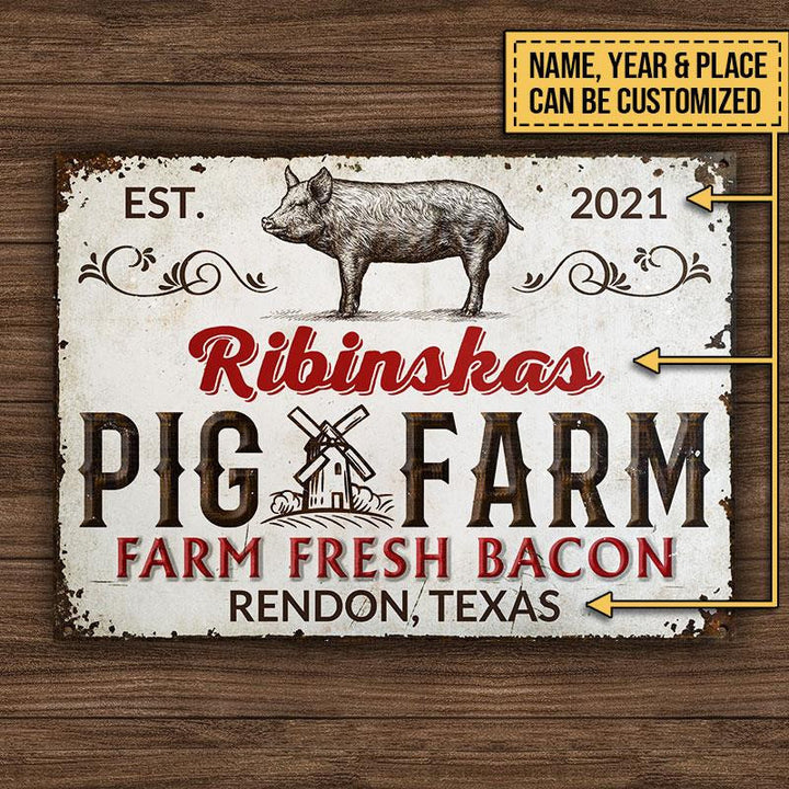 Joycorners Pig Farm Fresh Bacon White Rectangle Metal Sign Custom Text