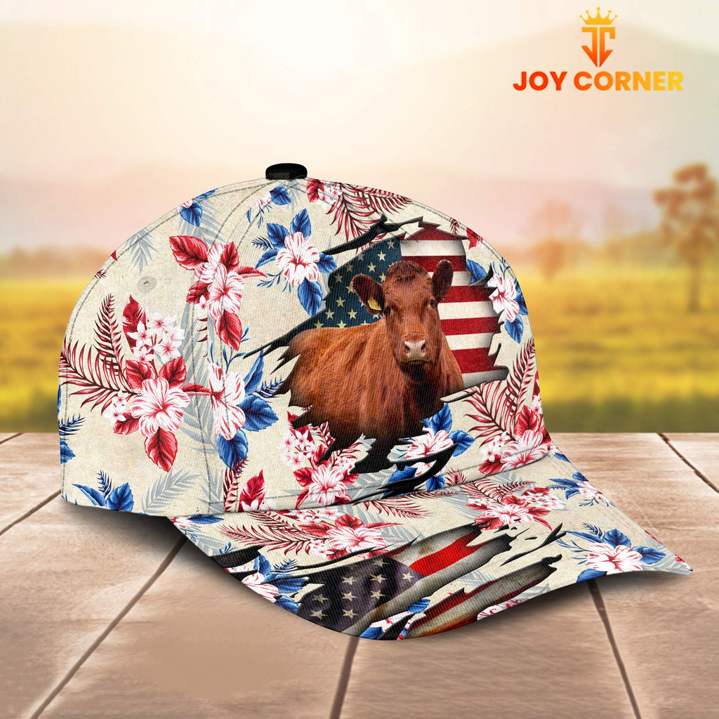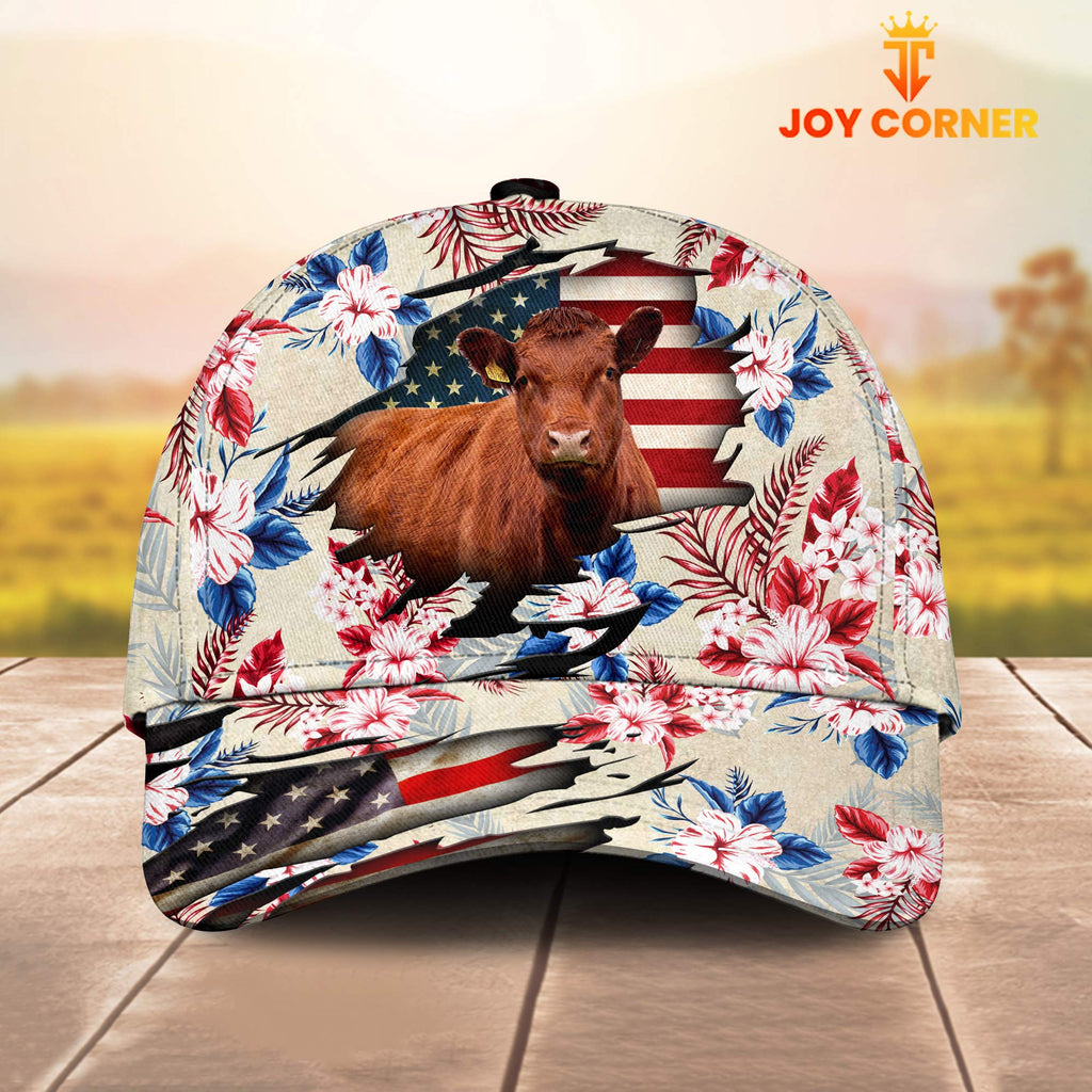 Joycorners Red Angus American Flag Flowers Pattern Cap