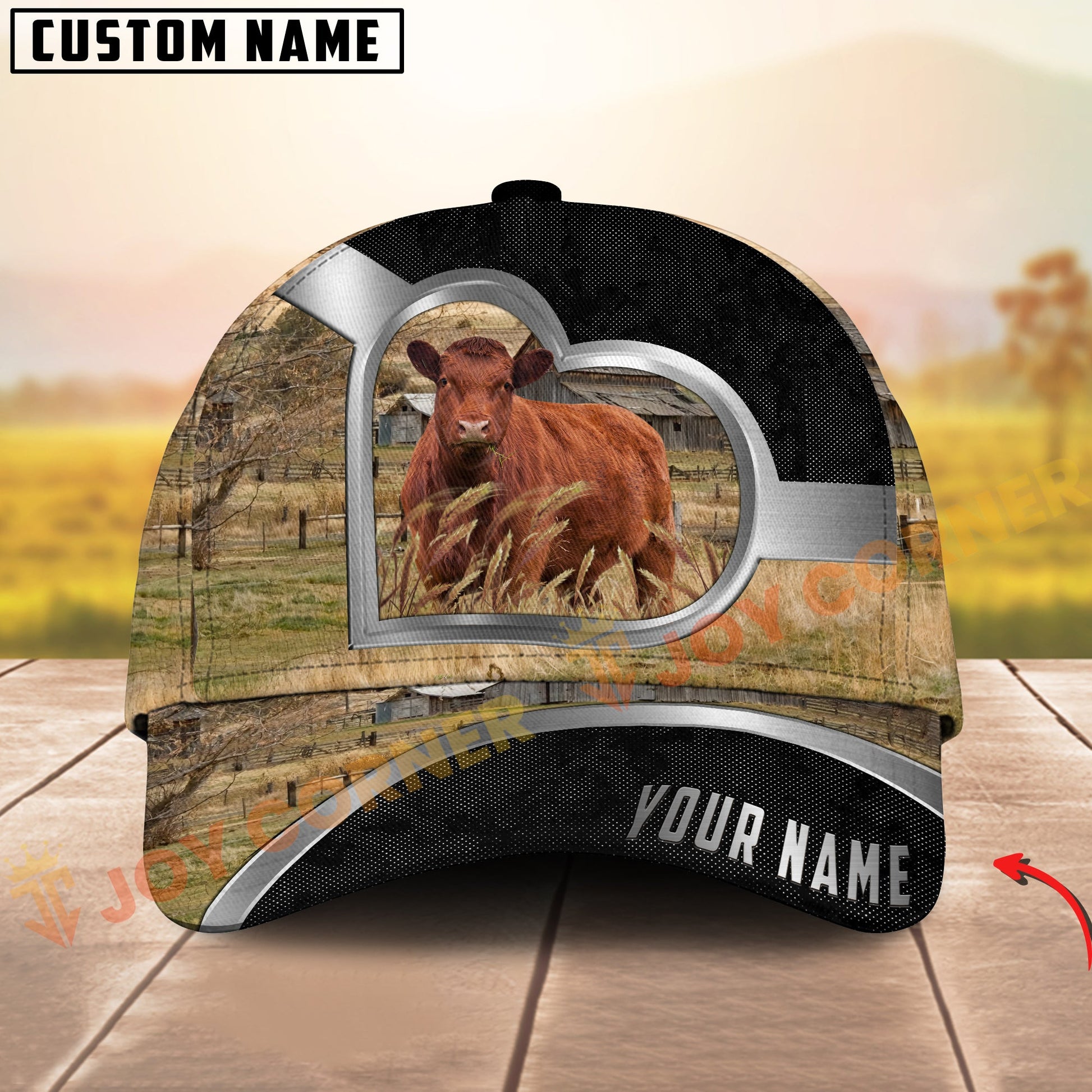 Joycorners Red Angus Cow Heart Window Farm Hat Personalized Name 3D Cap