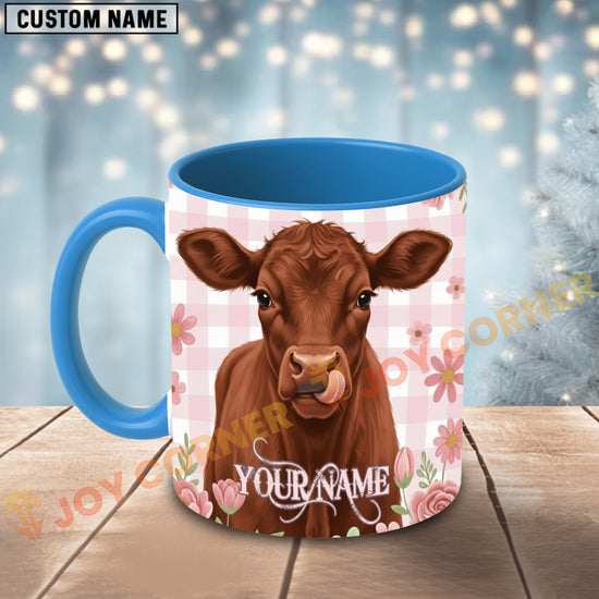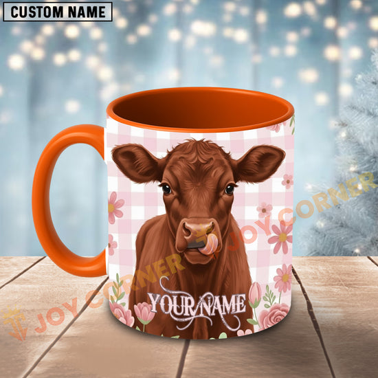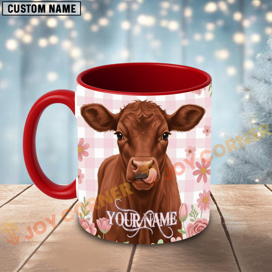 Joycorners Red Angus Cow Pink Plaid Flowers Personalized Mug